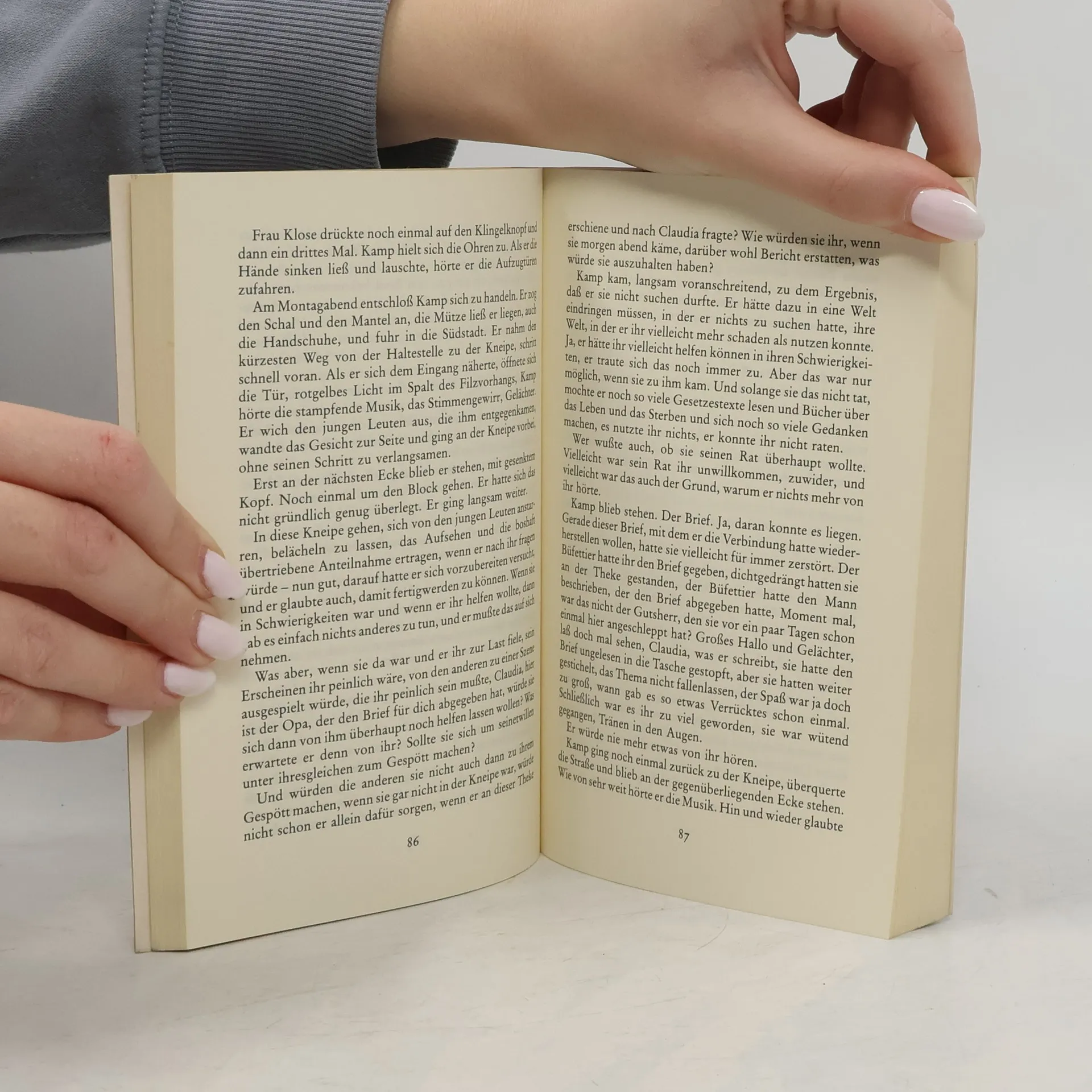Eine sehr junge Frau begegnet Kamp, der vom Leben schon lange nichts mehr erhofft. Kamp versteht nicht, warum Claudia immer wieder zu ihm kommt. Er argwöhnt, daß ein krimineller Plan dahintersteckt, und als Claudia wieder einmal untertaucht, sieht er sich bestätigt. Kamp beschließt, die törichten Hoffnungen zu begraben und sich aufs Sterben einzurichten. Aber Claudia kommt zurück. "