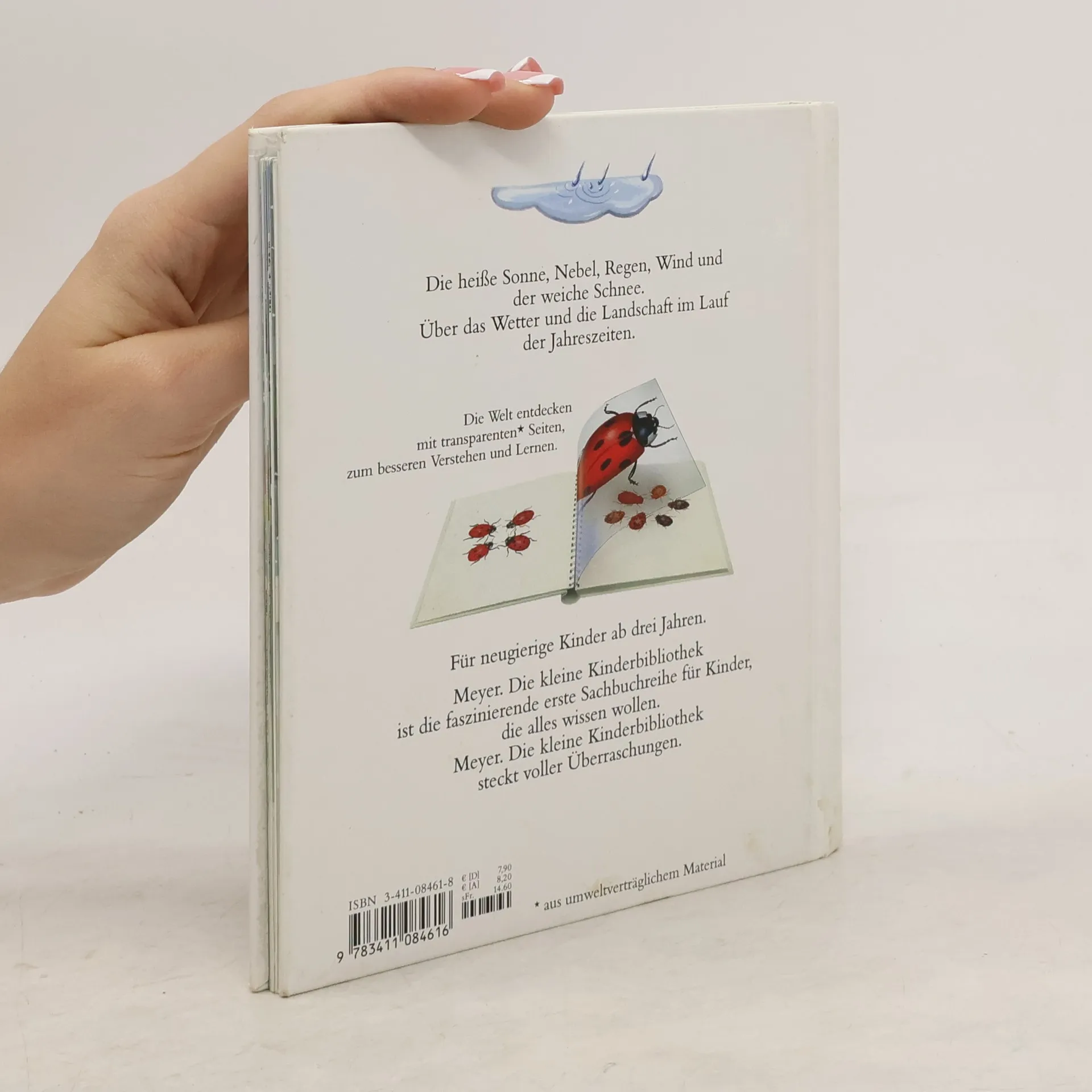 Durch spannende Effekte vermittelt die Bilderbuchreihe „Meyers kleine Kinderbibliothek“ erstes Sachwissen für Kinder ab 3 Jahren. Transparente Folien zeigen beim Umblättern das Innenleben von Dingen, machen Verdecktes sichtbar oder veranschaulichen Veränderungen. In diesem Band der Sachbuchreihe erfahren die Kleinen alles über das Wetter und die Veränderungen der Landschaft im Lauf der Jahreszeiten: über die heiße Sonne und den weichen Schnee, den Nebel, den Regen und den Wind.