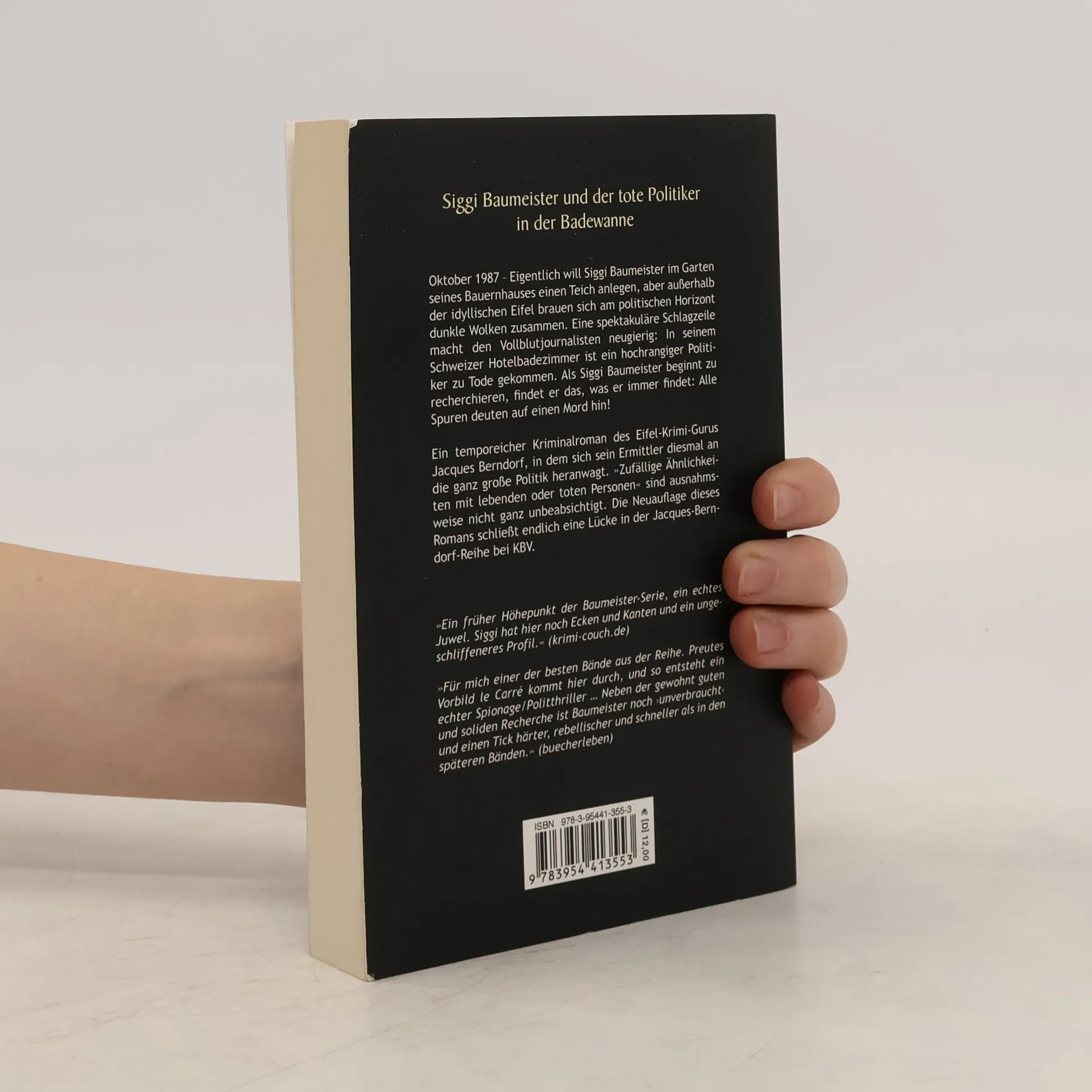Siggi Baumeister und der tote Politiker in der Badewanne Eigentlich will Siggi Baumeister im Garten seines Bauernhauses einen Teich anlegen, aber au˚erhalb der idyllischen Eifel brauen sich am politischen Horizont dunkle Wolken zusammen. Eine spektakuläre Schlagzeile macht den Vollblutjournalisten neugierig: In seinem Schweizer Hotelbadezimmer ist ein hochrangiger Politiker zu Tode gekommen. Als Siggi Baumeister beginnt, zu recherchieren, findet er das, was er immer findet: Alle Spuren deuten auf einen Mord hin! Ein temporeicher Kriminalroman des Eifel-Krimi-Gurus Jacques Berndorf, in dem sich sein Ermittler diesmal an die ganz gro˚e Politik heranwagt. Endlich als Neuauflage in der Jacques-Berndorf-Reihe bei KBV.