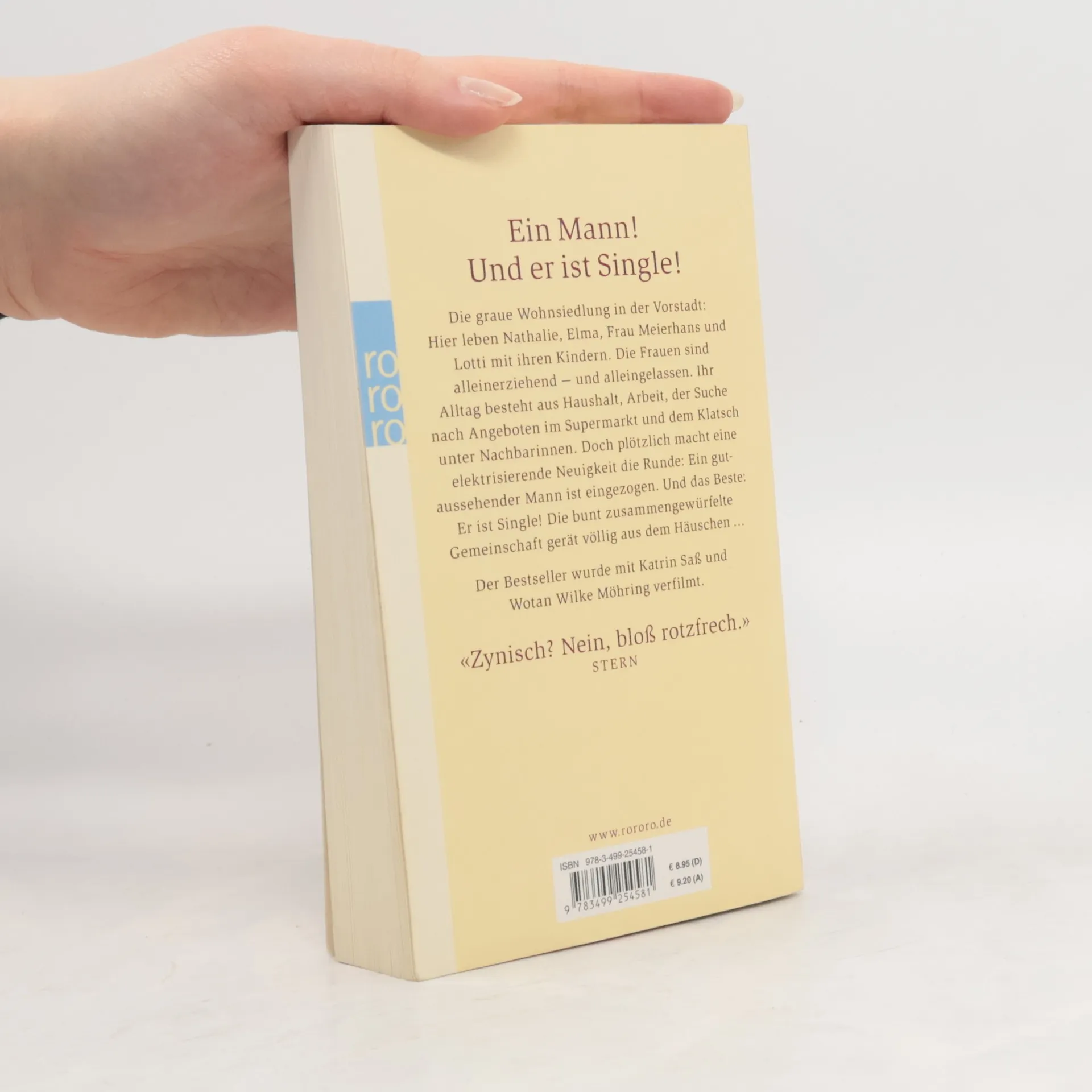 Ein Mann! Und er ist Single! Die graue Wohnsiedlung in der Vorstadt: Hier leben Nathalie, Elma, Frau Meierhans und Lotti mit ihren Kindern. Die Frauen sind alleinerziehend — und alleingelassen. Ihr Alltag besteht aus Haushalt, Arbeit, der Suche nach Angeboten im Supermarkt und dem Klatsch unter Nachbarinnen. Doch plötzlich macht eine elektrisierende Neuigkeit die Runde: Ein gutaussehender Mann ist eingezogen. Und das Beste: Er ist Single! Die bunt zusammengewürfelte Gemeinschaft gerät völlig aus dem Häuschen ... Der Bestseller wurde mit Katrin Saß und Wotan Wilke Möhring verfilmt. «Zynisch? Nein, bloß rotzfrech.» STERN