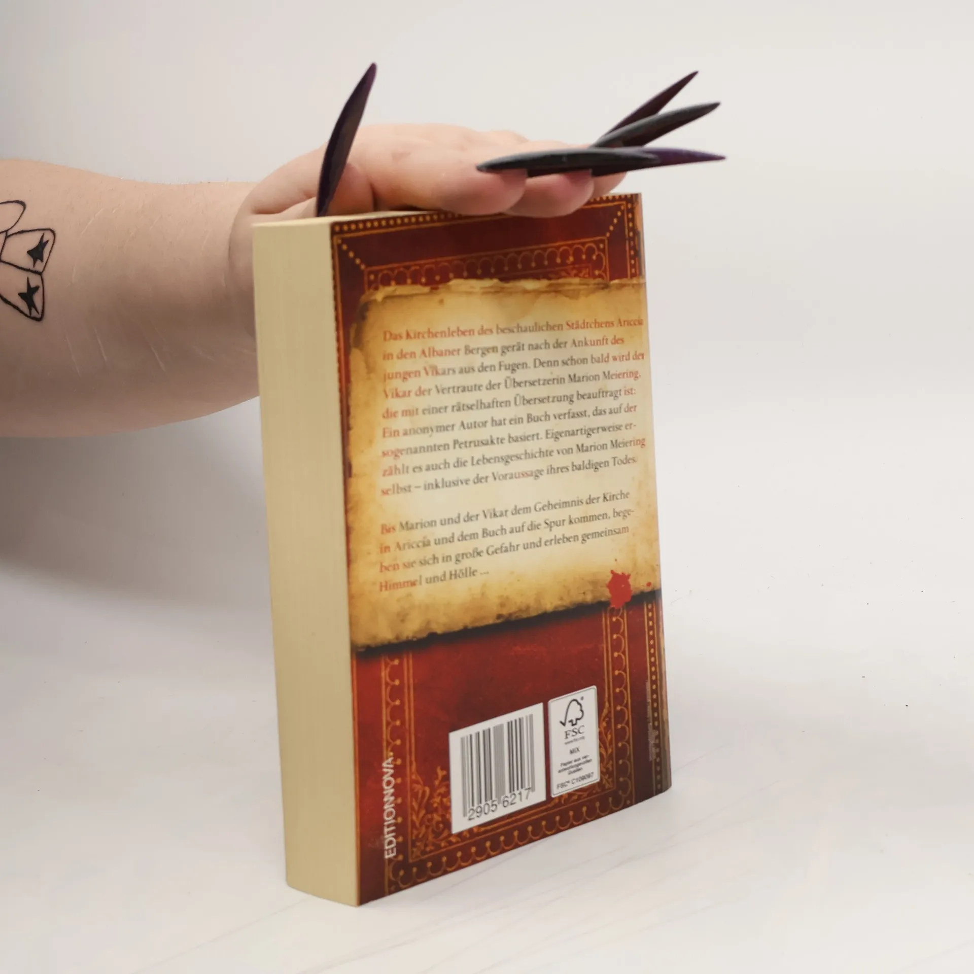 In Ariccia, der Schlossstadt in den Albaner Bergen vor Rom, gerät nach der Ankunft eines jungen Vikars das beschauliche Leben der Kirchengemeinde aus den Fugen. Der Vikar wird schon bald zum Vertrauten einer Übersetzerin, Marion Meiering, die das Buch eines anonymen Autors ins Deutsche übertragen soll.Ein Buch, das rätselhafterweise ihre eigene Lebensgeschichte erzählt und ihren baldigen Tod voraussagt. Bis Marion und der Vikar das Geheimnis der Kirche in Ariccia und des Buches, das auf der so genannten Petrusakte basiert, lösen können, gehen sie durch Himmel und Hölle.