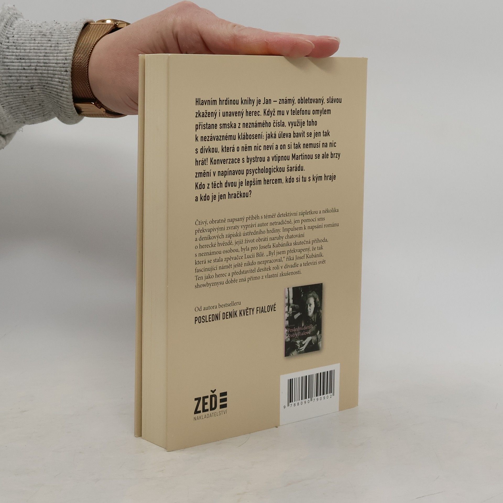 Skutečný příběh, který se může stát i vám... Hlavním hrdinou knihy je Jan – známý, obletovaný, slávou zkažený i unavený herec. Když mu v telefonu omylem přistane smska z neznámého čísla, využije toho k nezávaznému klábosení: jaká úleva bavit se jen tak s dívkou, která o něm nic neví a on si tak nemusí na nic hrát! Konverzace s bystrou a vtipnou Martinou se ale brzy změní v napínavou psychologickou šarádu. Kdo z těch dvou je lepším hercem, kdo si tu s kým hraje a kdo je jen hračkou? Čtivý, obratně napsaný příběh s téměř detektivní zápletkou a několika překvapivými zvraty vypráví autor netradičně, jen pomocí sms a deníkových zápisků ústředního hrdiny. Impulsem k napsání románu o herecké hvězdě, jejíž život obrátí naruby chatování s neznámou osobou, byla pro Josefa Kubáníka skutečná příhoda, která se stala zpěvačce Lucii Bílé. „Byl jsem překvapený, že tak fascinující námět ještě nikdo nezpracoval,” říká Josef Kubáník, který loni napsal bestseller Poslední deník Květy Fialové. Jako herec a představitel desítek rolí v divadle a televizi svět showbyznysu dobře zná přímo z vlastní zkušenosti.