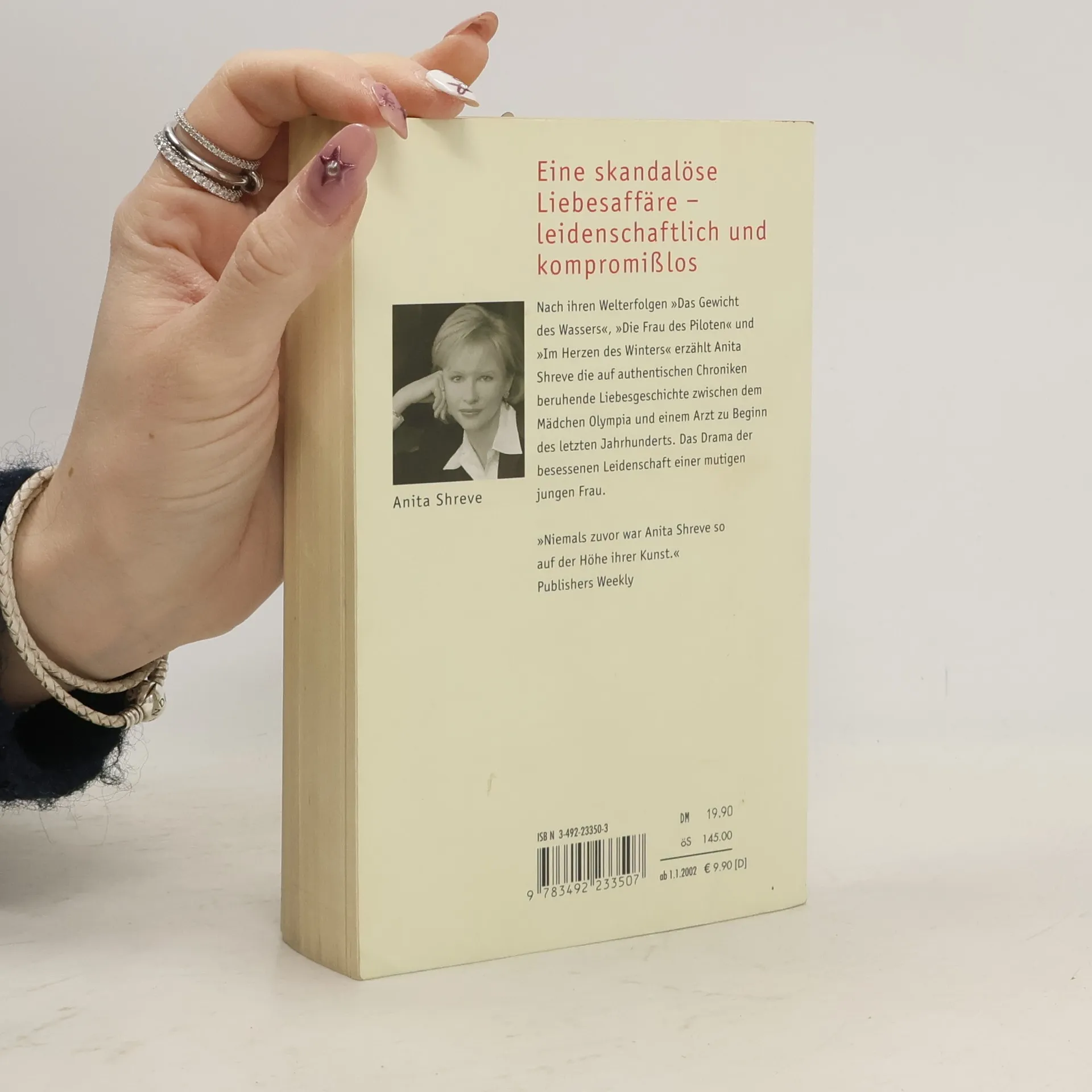 Anita Shreve gehört seit ihrem Bestseller 'Die Frau des Piloten' zu den amerikanischen Top-Autoren. In ihrem neuen Roman 'Olympia', den sie selbst als ihren wichtigsten bezeichnet, erzählt sie auf der Basis historischer Ereignisse eine skandalöse Liebesgeschichte aus der Zeit um 1900. Die fünfzehnjährige Olympia verliebt sich in den einundvierzigjährigen Arzt und Familienvater John Haskell. Eine leidenschaftliche Affäre beginnt, die sich dramatisch zuspitzt, als die Beziehung ans Licht kommt und Olympia entdeckt, daß sie schwanger ist. Die junge Frau steht mutig zu ihrer Liebe jenseits aller Konventionen.