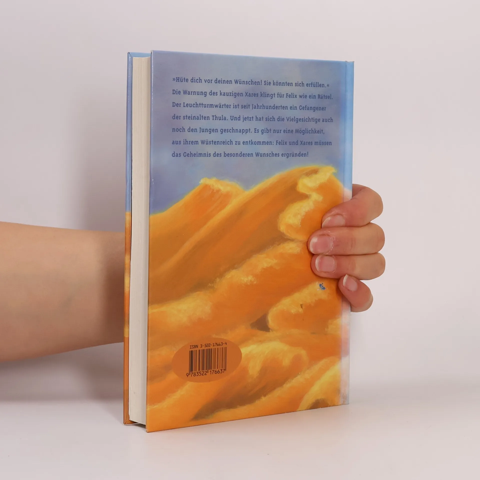 Wünschen will gelernt sein! Felix leidet unter „Wunschverstopfung“. Sosehr er sich auch bemüht, es fällt ihm nichts mehr ein, was er sich noch wünschen könnte. Nur um seine alarmierten Eltern zu beruhigen, wünscht er sich, auf einem weißen Kamel durch die Wüste zu reiten. Damit beginnt das Verhängnis, denn in der Wüste lauert die steinalte Thula, ein Ungeheuer mit vielen Gesichtern, das von „falschen“ Wünschen lebt und Felix nicht mehr aus ihren Fängen lassen will. Phantastisches Abenteuer in der Wüste. Ab 10 Jahren
