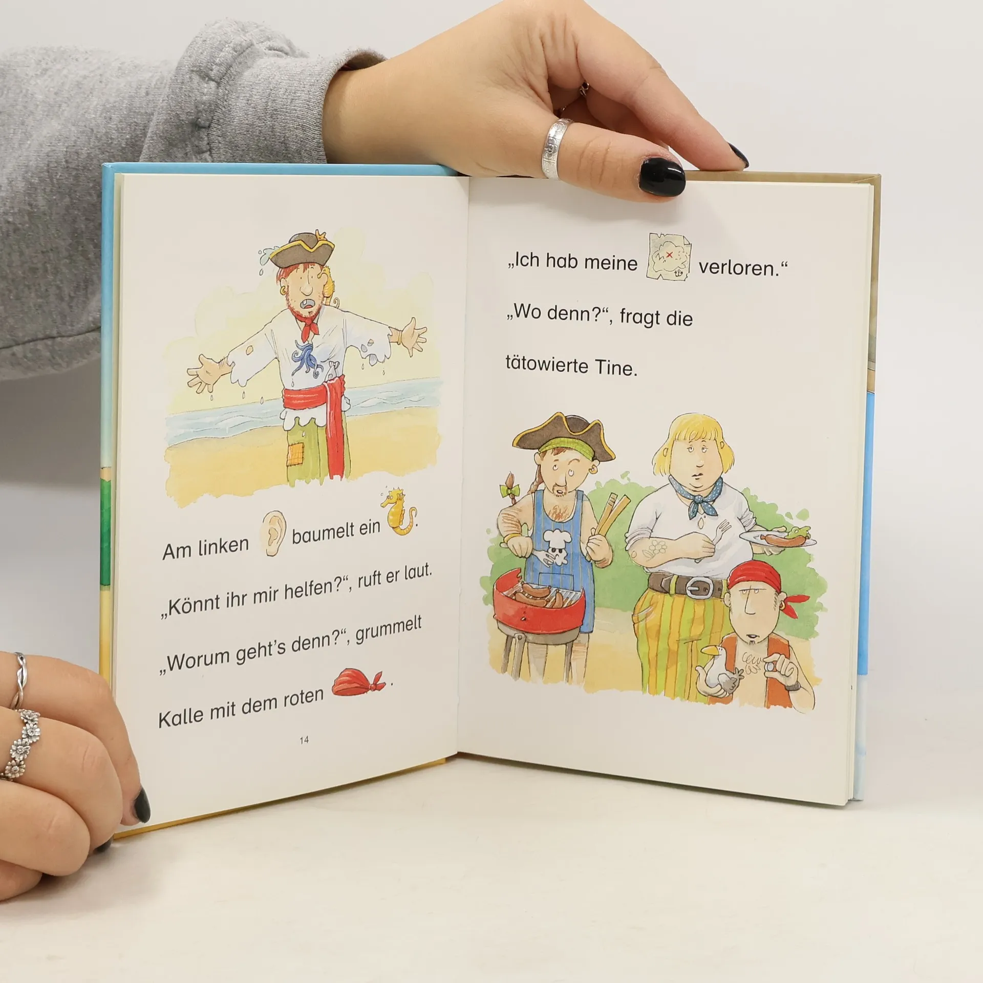 Eine Insel unter schwarzer Flagge? Das muss die berühmte Pirateninsel sein! Hier verbuddeln der dusslige Ronnie und Kalle mit dem roten Kopftuch ihre erbeuteten Schatzkisten und feiern mit den anderen Seeräubern die besten Piratenfeste. Doch was machen diie wilden Piratenkerle, wenn die Schiffe des Königs ihre Insel belagern? Dann setzen sie einfachmitten in der Nacht die Segel und stechen heimlich in See.