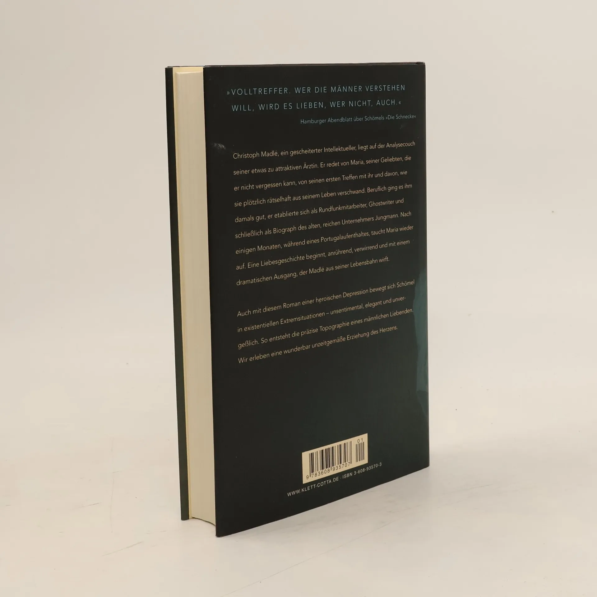 Christoph Madlé, ein gescheiterter Intellektueller, liegt auf der Analysecouch seiner etwas zu attraktiven Ärztin. Er redet von Maria, seiner Geliebten, die er nicht vergessen kann, von seinen ersten Treffen mit ihr und davon, wie sie plötzlich rätselhaft aus seinem Leben verschwand. Beruflich ging es ihm damals gut, er etablierte sich als Rundfunkmitarbeiter, Ghostwriter und schließlich als Biograph des alten, reichen Unternehmers Jungmann. Nach einigen Monaten, während eines Portugalaufenthaltes, taucht Maria wieder auf. Eine Liebesgeschichte beginnt, anrührend, verwirrend und mit einem dramatischen Ausgang, der Madlé aus seiner Lebensbahn wirft. Auch mit diesem Roman einer heroischen Depression bewegt sich Schömel in existentiellen Extremsituationen - unsentimental, elegant und unvergeßlich. So entsteht die präzise Topographie eines männlichen Liebenden. Wir erleben eine wunderbar unzeitgemäße Erziehung des Herzens.