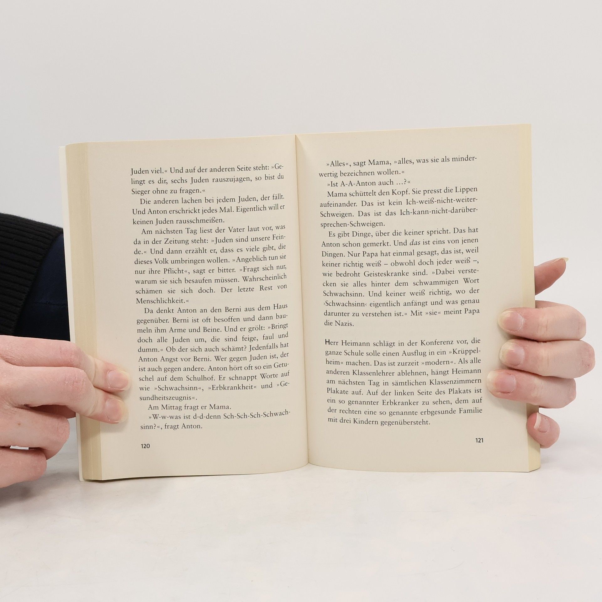 Lehrer Heimann hat Anton immer mehr auf dem Kieker. Er gibt Strafarbeiten, wenn Anton zuckt. Er schlägt, wenn Anton schweigt. Er lacht ihn aus, wenn Anton stottert. Er spottet, wenn Anton rechnet. Einer wie Anton hat in der Schule nichts zu suchen. Einer wie Anton hat eigentlich überhaupt kein Recht zu leben. Denn Anton ist behindert, und es ist das Jahr 1941.