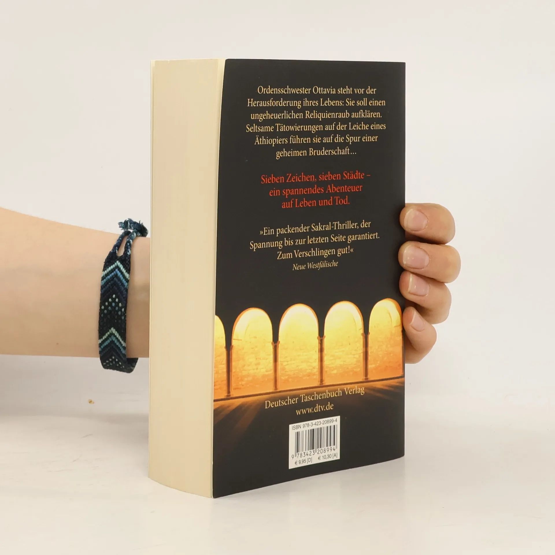 Sieben Zeichen, sieben Städte und eine mysteriöse Bruderschaft: ein spannungsgeladener Abenteuerroman. Der Bestseller aus Spanien! Seltsame Tätowierungen zieren die Leiche eines Äthiopiers. Als Ottavia Salina völlig überraschend zum mächtigsten Mann des Kirchenstaats, Kardinal Sodano, gerufen wird, ahnt sie nicht, was sie erwartet: Die renommierte Paläographin des Vatikanischen Geheimarchivs wird beauftragt, die geheimnisvollen Kreuze und Buchstaben auf dem Toten zu entschlüsseln. Gemeinsam mit dem undurchschaubaren Hauptmann Glauser-Röist von der Schweizergarde und Farag Boswell, einem koptischen Archäologen aus Alexandria, macht sich Ottavia Salina auf die Suche nach den Reliquienräubern. Sieben Prüfungen auf Leben und Tod hat das kuriose Detektivtrio zu bestehen, die um Dantes ›Göttliche Komödie‹ und die sieben Todsünden kreisen. Diese sieben Prüfungen führen sie auch in die sieben historischen Hauptstädte des Christentums: nach Rom, Ravenna, Athen, Jerusalem, Konstantinopel, Alexandria und Antiochia. Ein fesselnder Abenteuerroman um die bestgehüteten Geheimnisse des Christentums.