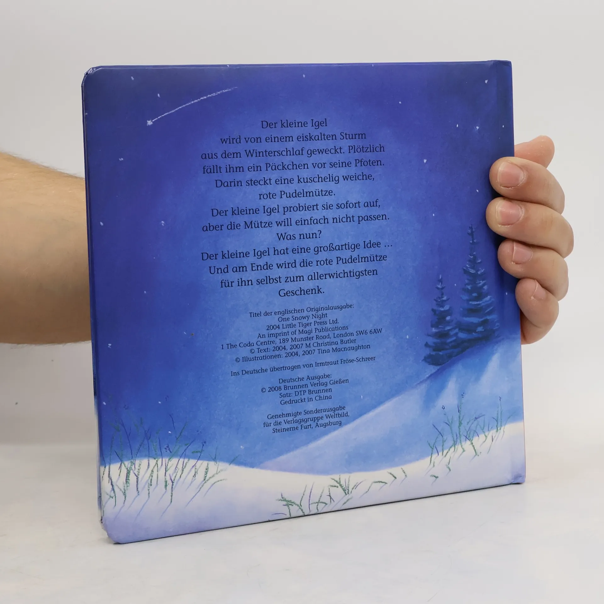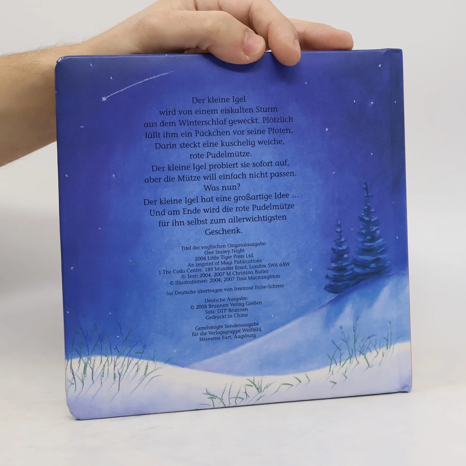 Der kleine Igel wird von einem eiskalten Sturm aus dem Winterschlaf geweckt. Nun friert er so sehr, dass er nicht wieder einschlafen kann. Plötzlich fällt ihm ein Päckchen vor die Pfoten. "Für den kleinen Igel" steht darauf - und eine kuschelig weiche, rote Pudelmütze steckt darin. Der kleine Igel probiert sie sofort auf, aber die Mütze will einfach nicht über seine Stacheln passen. Was nun? Der kleine Igel hat eine großartige Idee ... Und am Ende wird die rote Pudelmütze zum allerwichtigsten Geschenk.