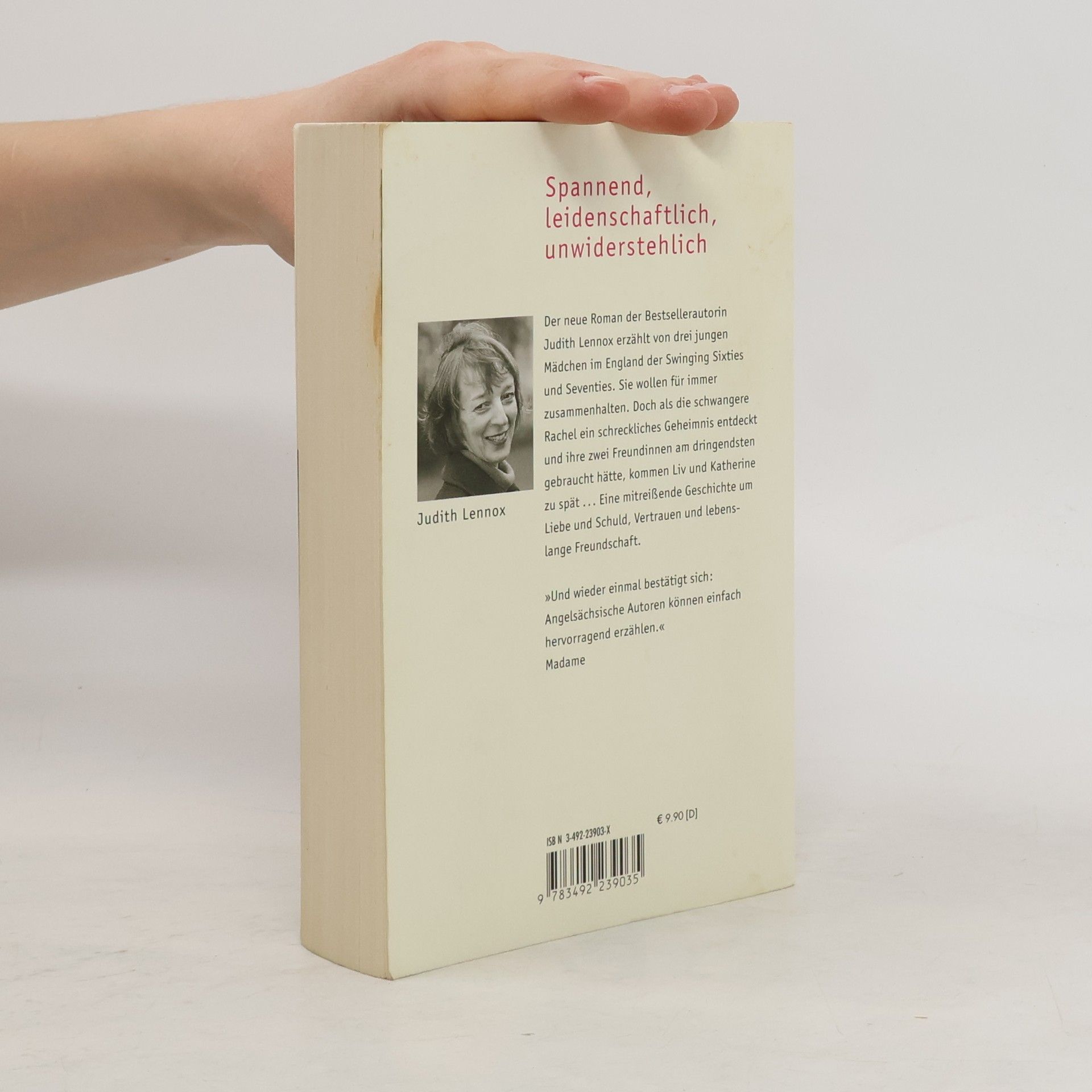 Spannend, leidenschaftlich, unwiderstehlich Bestsellerautorin Judith Lennox erzählt von drei jungen Mädchen im England der Swinging Sixties und Seventies. Sie wollen für immer zusammenhalten. Doch als die schwangere Rachel ein schreckliches Geheimnis entdeckt und ihre beiden Freundinnen am dringendsten braucht, kommen Liv und Katherine zu spät … Eine mitreißende Geschichte um Liebe und Schuld, Vertrauen und lebenslange Freundschaft. „Neben romantischen Liebesgeschichten erzählt Judith Lennox immer auch von den Läufen der Zeit, den Wandlungen der Gesellschaft und dem Durst nach Freiheit und Eigenständigkeit der Frauen." Buchkultur Bewegende Frauenschicksale, viel Atmosphäre und Zeitkolorit: Ihre Romane »Das Winterhaus« und »Die Mädchen mit den dunklen Augen« machten Judith Lennox berühmt. Seitdem verzaubert sie ihre LeserInnen mit jedem neuen Roman und ist regelmäßig in den Spiegel-Bestsellerlisten zu finden.