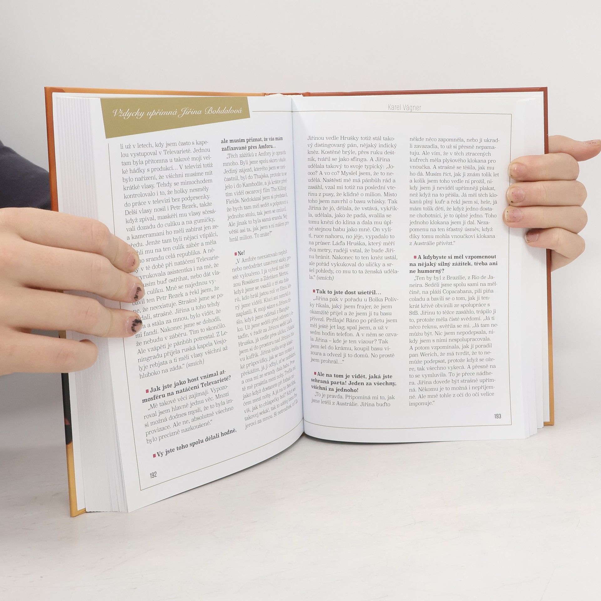 Memoáry už Jiřina Bohdalová má, a ne jedny. Vyšly takové, které napsala vlastní rukou i takové, které o ní napsali jiní. Tato kniha je úplně jiná. Oblíbená herečka nás v ní sice provede zásadními životními mezníky, hlavně ale dala slovo jiným. Co si o Jiřině myslí členové její rodiny, spolužáci z DAMU a hvězdní kolegové? Téměř všichni jí v této knize oplácejí upřímnost, jakou je ona sama známá celý život – Jiřina je totiž ke svým blízkým vždycky upřímná. O Bohdalce a pro Bohdalku k jejím 90. narozeninám se tak rozpovídali třeba Simona Stašová, Jiří Suchý, Dagmar Havlová, Josef Somr, Viktor Preiss, Karel Šíp, Zlata Adamovská, Jan Hrušínský, Martin Dejdar, Zdeněk Zelenka, Jiří Lábus, Aňa Geislerová a mnozí další!