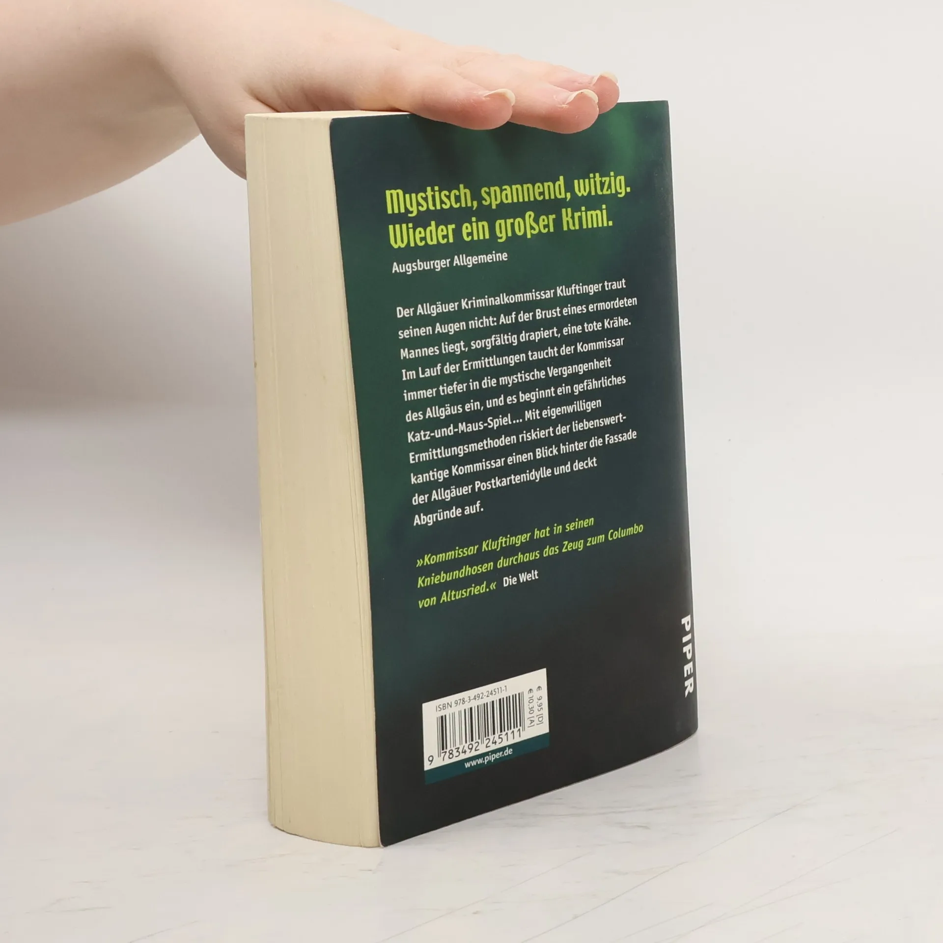 Der Allgäuer Kriminalkommissar Kluftinger traut seinen Augen nicht: Auf der Brust eines toten Mannes in einem Wald bei Kempten liegt, sorgfältig drapiert, eine tote Krähe. Im Lauf der Ermittlungen taucht der Kommissar immer tiefer in die mystische Vergangenheit des Allgäus ein, und es beginnt ein Katz-und-Maus-Spiel mit dem Mörder, bei dem die Zeit gegen ihn arbeitet. Denn alle Zeichen sprechen dafür, dass das Morden weitergeht … Mit eigenwilligen Ermittlungsmethoden riskiert der liebenswert-kantige Kommissar einen Blick hinter die Fassade der Allgäuer Postkartenidylle und deckt Abgründe auf.