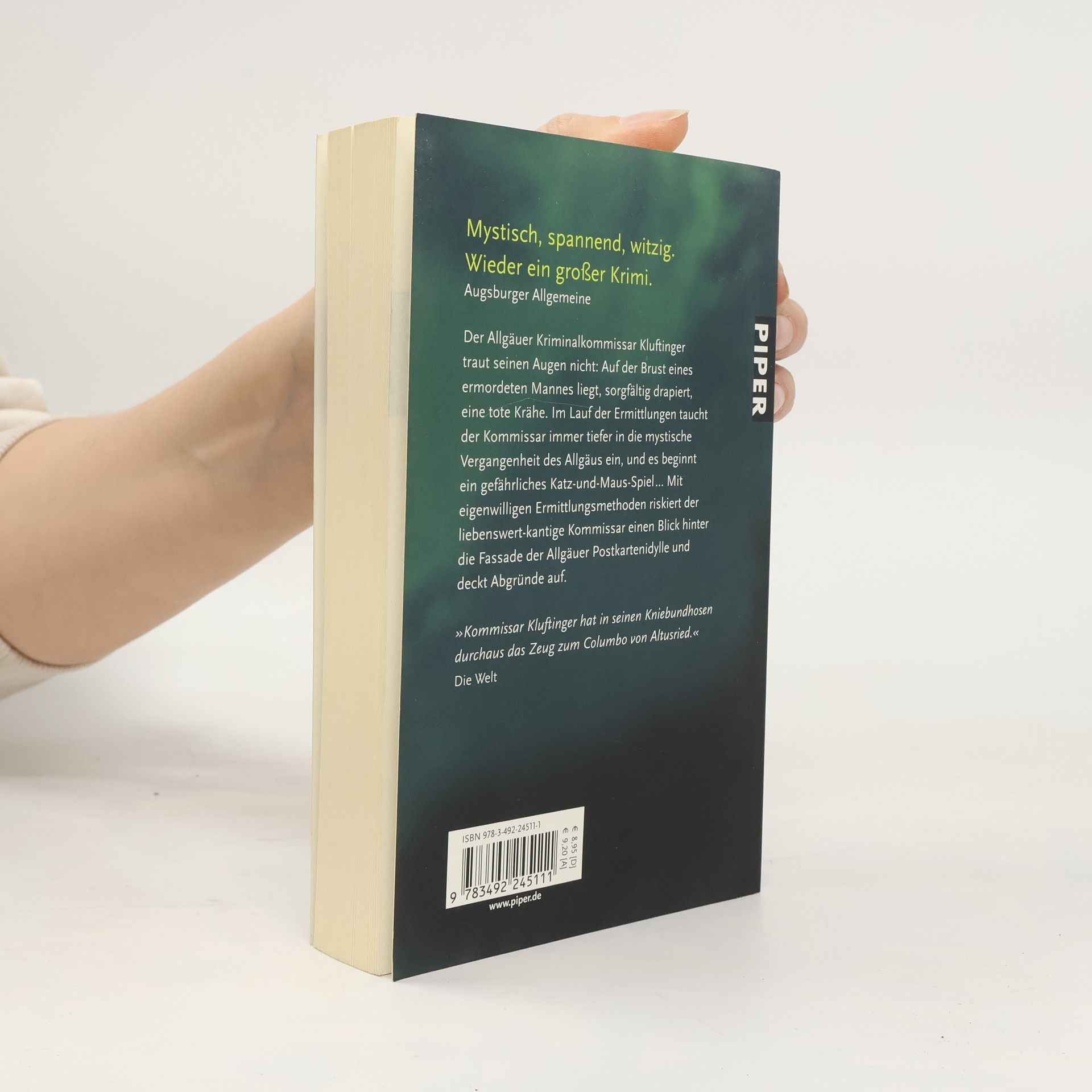 Der Allgäuer Kriminalkommissar Kluftinger traut seinen Augen nicht: Auf der Brust eines toten Mannes in einem Wald bei Kempten liegt, sorgfältig drapiert, eine tote Krähe. Im Lauf der Ermittlungen taucht der Kommissar immer tiefer in die mystische Vergangenheit des Allgäus ein, und es beginnt ein Katz-und-Maus-Spiel mit dem Mörder, bei dem die Zeit gegen ihn arbeitet. Denn alle Zeichen sprechen dafür, dass das Morden weitergeht … Mit eigenwilligen Ermittlungsmethoden riskiert der liebenswert-kantige Kommissar einen Blick hinter die Fassade der Allgäuer Postkartenidylle und deckt Abgründe auf.