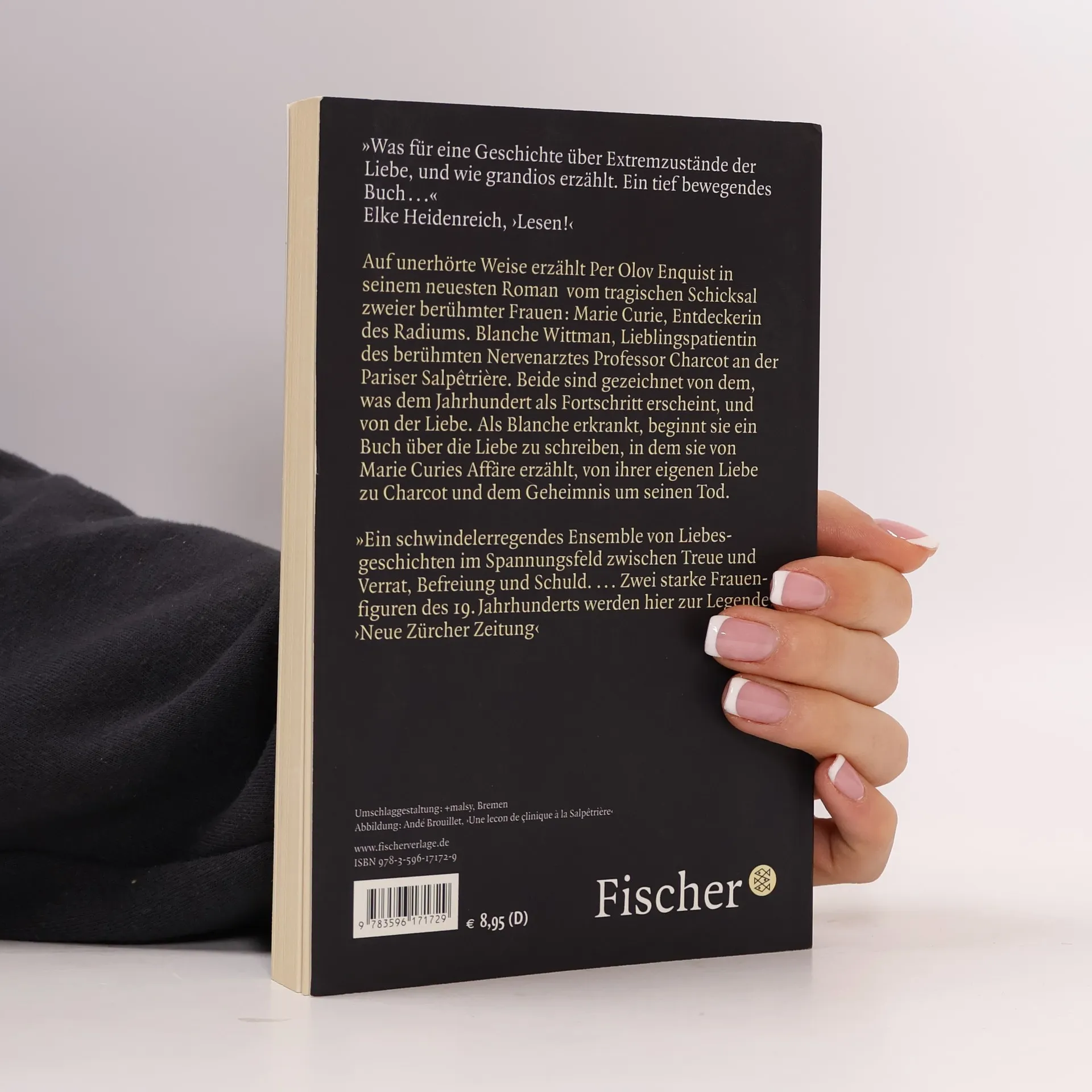 Auf unerhörte Weise erzählt Per Olov Enquist in seinem neuesten Roman vom tragischen Schicksal zweier berühmter Frauen: Marie Curie, Entdeckerin des Radiums. Blanche Wittman, Lieblingspatientin des berühmten Nervenarztes Professor Charcot an der Pariser Salpêtrière. Beide sind gezeichnet von dem, was dem Jahrhundert als Fortschritt erscheint, und von der Liebe. Als Blanche erkrankt, beginnt sie ein Buch über die Liebe zu schreiben, in dem sie von Marie Curies Affären erzählt, von ihrer eigenen Liebe zu Charcot und dem Geheimnis um seinen Tod.