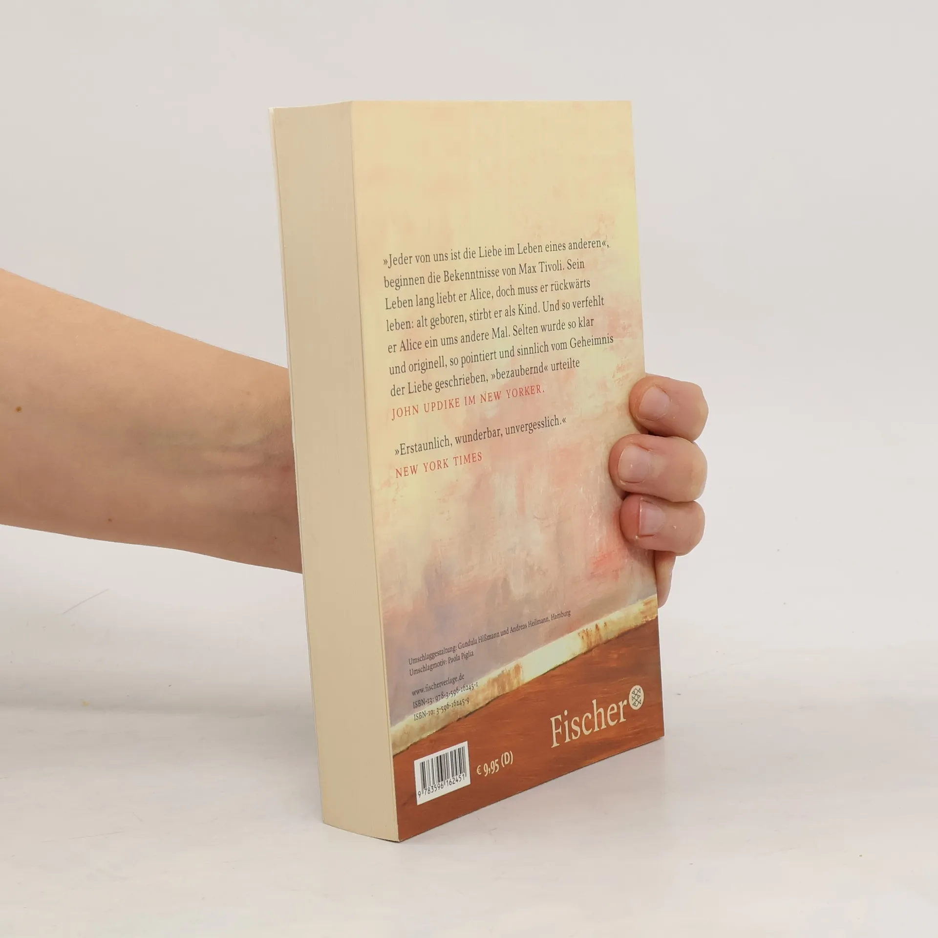 »Jeder von uns ist die Liebe im Leben eines anderen«, beginnt Max Tivoli die unerhörte Geschichte seines Lebens, das sich in einem Detail von allem unterscheidet. Und dieses Detail hütet er wie ein Geheimnis: Alt geboren, wird er seinem Ende entgegen zum Kind. Als das Erdbeben San Francisco erschüttert, ist er Mitte dreißig, und gegen Ende seines Lebens werden die ersten Radios in die Autos eingebaut. Die Achse, um die sich sein Leben dreht, heißt Alice. Max liebt sie sein Leben lang, doch als sie jung ist, wirkt er alt. Erst viel später schlagen die Uhren der beiden für kurze Zeit im gleichen Takt und ihre Liebe erhält eine zweite Chance. Doch auch sie bleibt nicht von Dauer. Selten wurde die Tragik und das Glück einer sich verfehlenden Liebe so packend inszeniert wie hier. Andrew Sean Greer evoziert in seinem Roman ein Leben voll Sehnsucht und Einsamkeit. Mit Staunen und Verwunderung feierte die amerikanische Kritik die Wahrheiten einer rückwärts gelebten Biographie. „Nur sehr selten macht eine wirklich originelle neue Stimme auf sich aufmerksam und erzählt eine noch nie gehörte Geschichte. Andrew Sean Greer ist ein phantastischer Schriftsteller und Max Tivoli markiert den Beginn eines bemerkenswerten Werkes, das bleiben wird.“Michael Cunningham