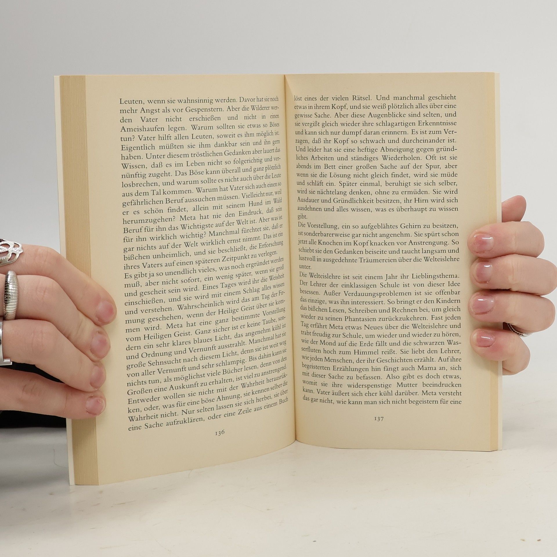 Einfühlsam und sehr genau beobachtend, beschreibt Marlen Haushofer die Welt aus der Sicht der kleinen Meta, die in einem Forsthaus aufwächst. Mit allen Sinnen nimmt diese ihre idyllische Umgebung in sich auf und versucht, Ordnung in das Durcheinander der Eindrücke und Ereignisse zu bringen.
