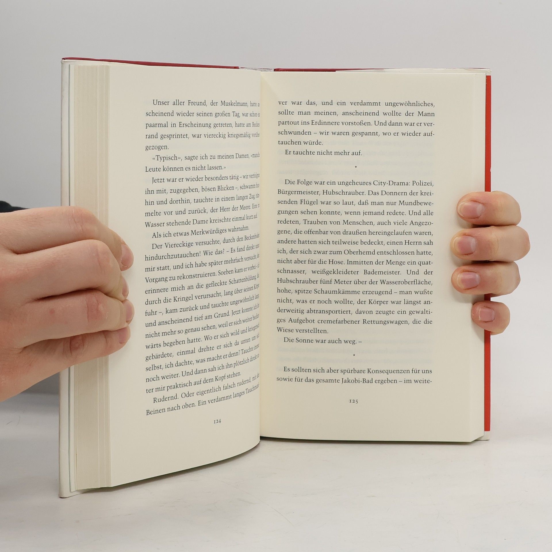 «Es gibt dort eine Freizone, wo ich alles ablege, alle Bindungen, alle erworbenen Eigenschaften, den Beruf, den Namen, auch Schuhe und Strümpfe und das gesamte Unterzeug.» München im schweren Sommer, im Jakobi-Bad: Zugang nur ohne Kleidung gestattet, und das ist ernst gemeint. Hier erfüllt sich das Geschick eines älteren Herrn, dessen erstes zaghaftes Betreten der weißen Flecke einer Stadtlandschaft in einem erbitterten Existenzkampf mündet, ausgefochten mit nichts als der eigenen Haut. Entwicklungsroman, Reisebericht und Beschreibung eines heimlichen Soziotops, folgt der Roman Die Schule der Nackten territorialen Eroberungen auf der Liegewiese in der Größenordnung von Alexanderzügen, entrollt ein Drama auf Leben und Tod um die schönhüftige Juliane, die ebensogut im frühen Ninife wie in altindischen Tantrakulturen ihren Platz gefunden hätte. Und letzthin findet. Ein leidenschaftlich grimmiges Epos voller Heiterkeit, und das Ganze auf höchst begrenztem Raum unter dem sommerlichen Glockengeläut Münchens. Mit diesem Roman wechselt Ernst Augustin zum Verlag C. H. Beck, der auch seine früheren Bücher neu herausbringen wird.