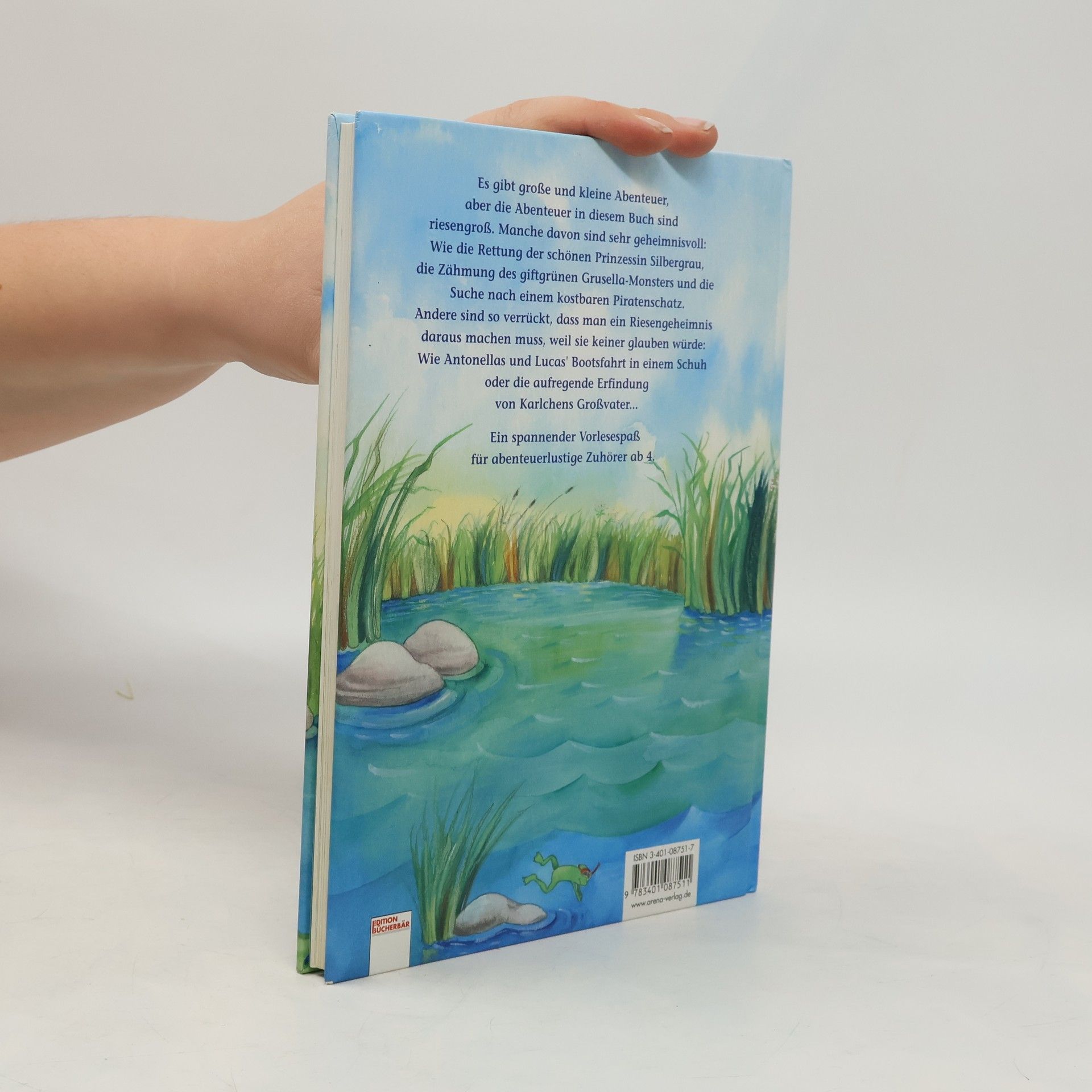 Es gibt große und kleine Abenteuer, aber die Abenteuer in diesem Buch sind riesengroß. Manche davon sind sehr geheimnisvoll: Wie die Rettung der schönen Prinzessin Silbergrau, die Zähmung des giftgrünen Grusella-Monsters und die Suche nach einem kostbaren Piratenschatz. Andere sind so verrückt, dass man ein Riesengeheimnis daraus machen muss, weil sie keiner glauben würde: Wie Antonellas und Lucas´ Bootsfahrt in einem Schuh oder die aufregende Erfindung von Karlchens Großvater...