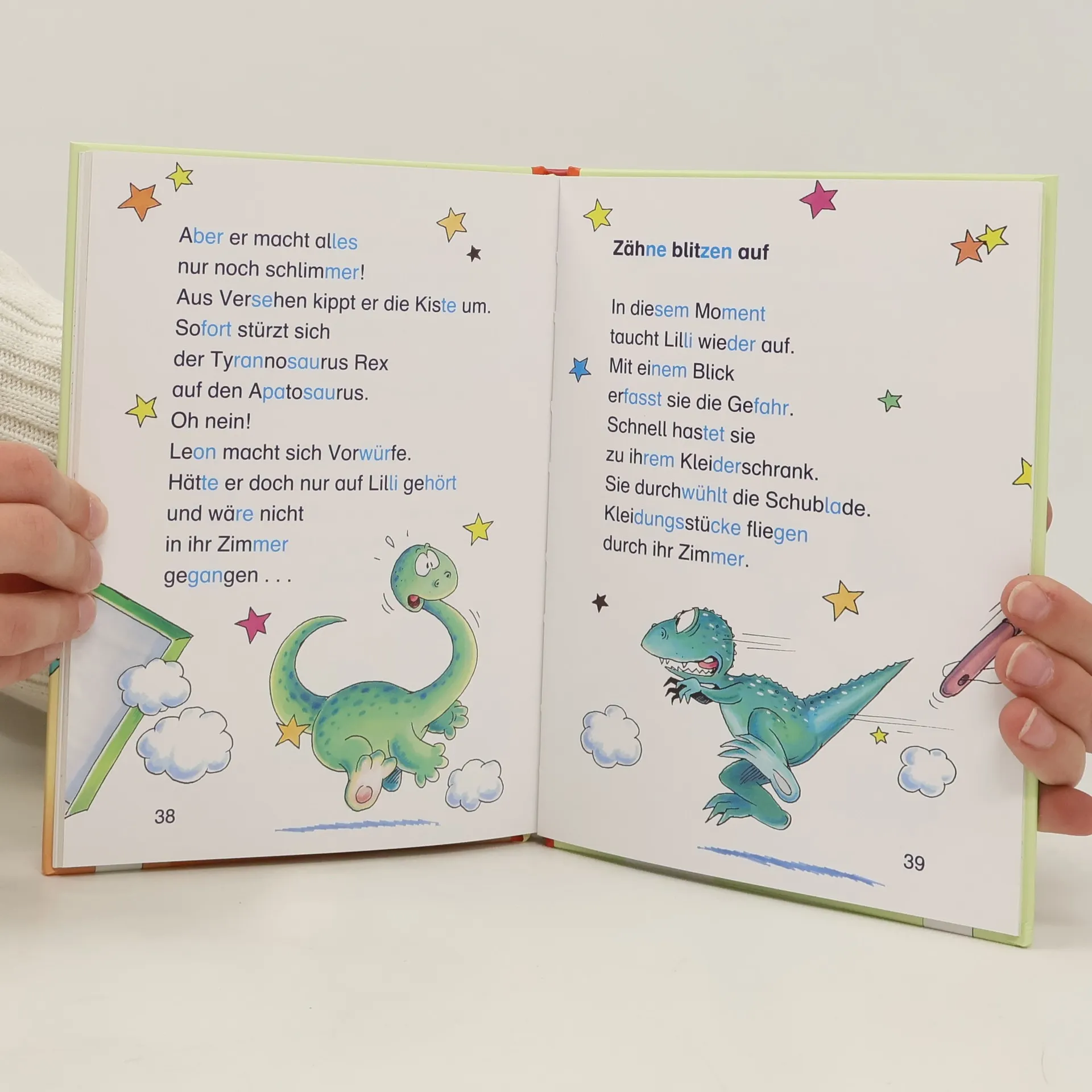 Wie gemein! Ihr kleiner Bruder Leon will Lilli nicht mit seinen Dinosauriern spielen lassen. Da bleibt nur eins: Lilli benutzt ihr geheimes Hexenbuch und zaubert ein Dinosaurier-Ei herbei. Das Ausbrüten übernimmt der Backofen. Kurz darauf schlüpft ein super-süßes Dinobaby - Lilli ist entzückt! Und weil der arme Kerl sich einsam fühlt, hext sie gleich ein weiteres Ei herbei.
