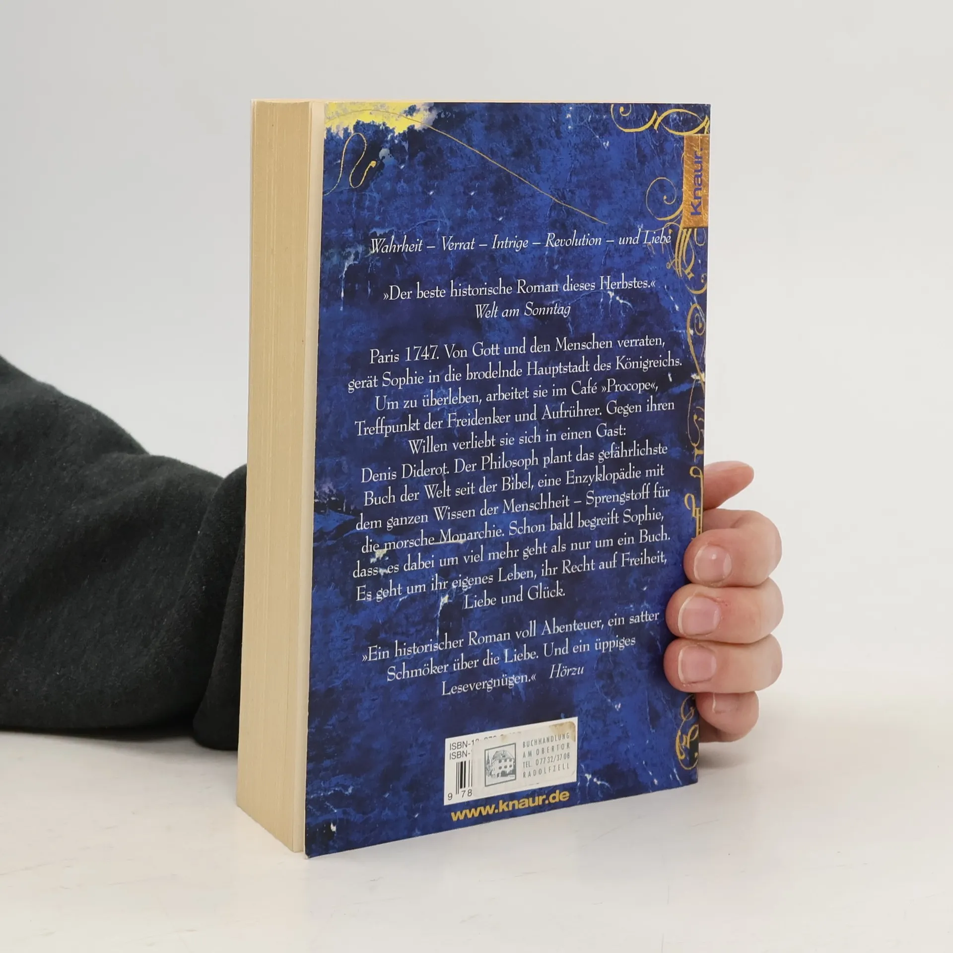 Paris 1747. Von Gott und den Menschen verraten, gerät Sophie in die brodelnde Hauptstadt des Königreichs. Um zu überleben, arbeitet sie im Café „Procope“, Treffpunkt der Freidenker und Aufrührer. Gegen ihren Willen verliebt sie sich in einen Gast: Denis Diderot. Der Philosoph plant das gefährlichste Buch der Welt seit der Bibel, eine Enzyklopädie mit dem ganzen Wissen der Menschheit - Sprengstoff für die morsche Monarchie. Schon bald begreift Sophie, dass es dabei um viel mehr geht als nur um ein Buch. Es geht um ihr eigenes Leben, ihr Recht auf Freiheit, Liebe und Glück.