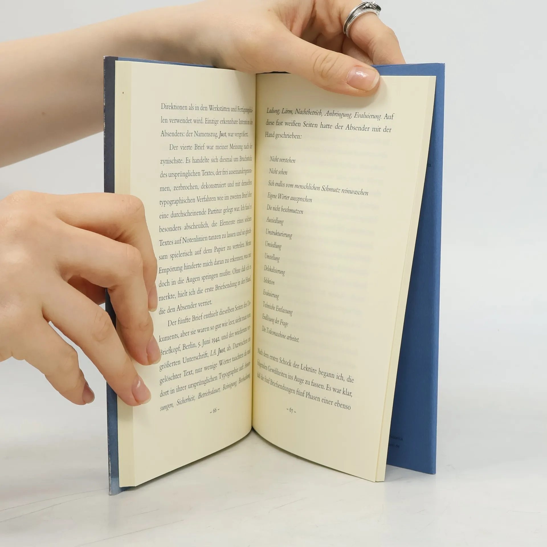 Wunderbare Stimmen. Traumhaft die Art, wie Ernst Jacobi den Mathias Rust spricht: Diese Mischung aus Getrieben- und Gebrochenheit im Gestus des Machtmenschen, während der Wahnsinn in den Pausen hockt, diesen meisterhaften Pausen. Auch alle Übrigen: Felix von Manteuffel, Jürg Löw, Corinna Kirchhoff natürlich und erst recht Elisabeth Schwarz -- gut durch die Bank. Dazu die Musik, die in der Erzählung von François Emmanuel so eine große Rolle spielt, Arvo Pärt, César Franck, Franz Schubert: alles Komponisten, die der Rezensent schätzt. Lassen Sie mich auch noch den Karton preisen. Hörbücher bieten ja dem alten Handwerk der Buchbinderei die schöne Möglichkeit, lauter schnuckelige kleine Kunstwerke zu schaffen, die gut in der Hand liegen. Auch das ist hier gelungen: Man kann sich gut vorstellen, den kleinen Band mit schräg darin haftender Kassette auch im nächsten, im übernächsten Jahr wieder aus dem Regal zu ziehen. Aus bloßer Lust am Anfassen und Aufklappen.