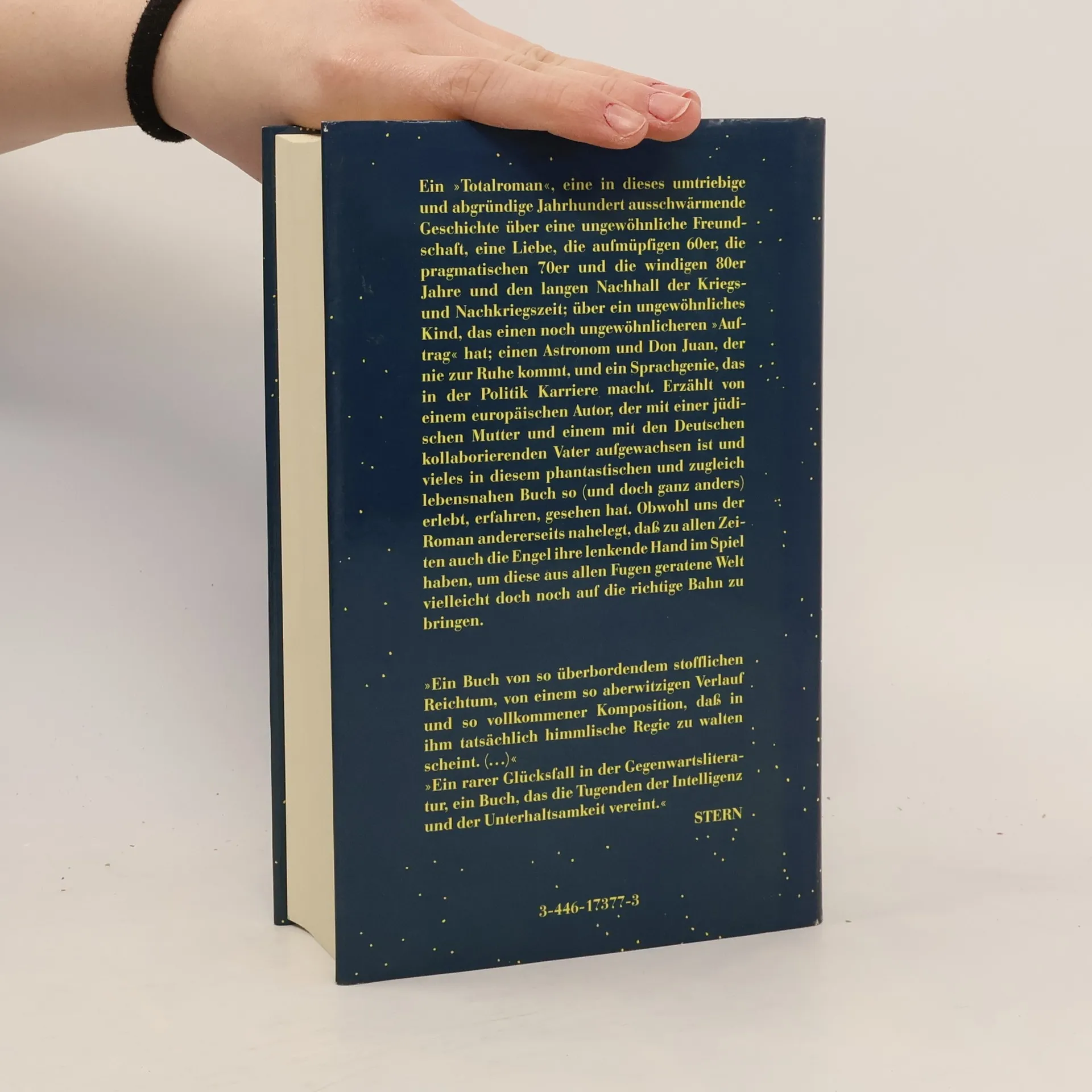 Ein Totalroman, eine in dieses umtriebige und abgründige Jahrhundert ausschwärmende Geschichte über eine ungewöhnliche Freundschaft, eine Liebe, die aufmüpfigen sechziger, die pragmatischen siebziger und die windigen achtziger Jahre; und den langen Nachhall der Kriegs- und Nachkriegszeit; über ein ungewöhnliches Kind, das einen noch ungewöhnlicheren Auftrag hat; einen Astronomen und Don Juan, der nie zur Ruhe kommt, und ein Sprachgenie, das in der Politik Karriere macht.