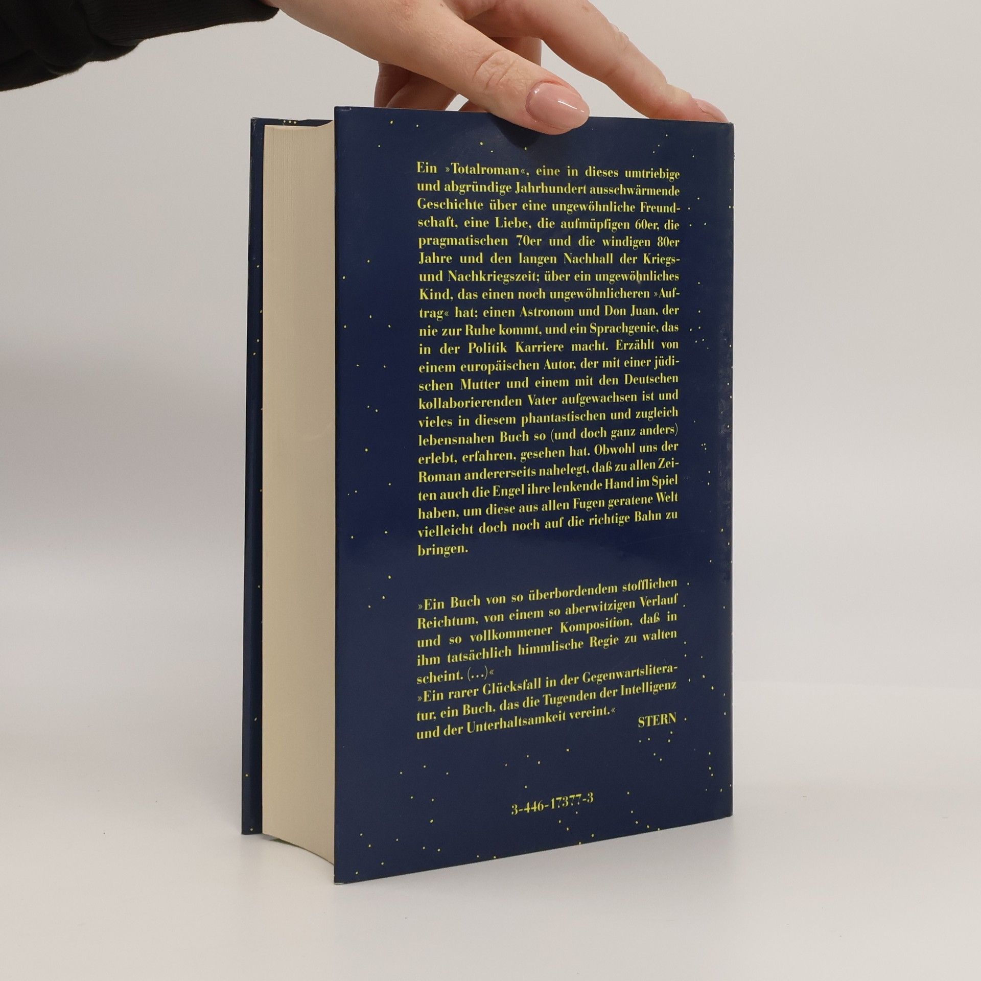 Ein Totalroman, eine in dieses umtriebige und abgründige Jahrhundert ausschwärmende Geschichte über eine ungewöhnliche Freundschaft, eine Liebe, die aufmüpfigen sechziger, die pragmatischen siebziger und die windigen achtziger Jahre; und den langen Nachhall der Kriegs- und Nachkriegszeit; über ein ungewöhnliches Kind, das einen noch ungewöhnlicheren Auftrag hat; einen Astronomen und Don Juan, der nie zur Ruhe kommt, und ein Sprachgenie, das in der Politik Karriere macht.