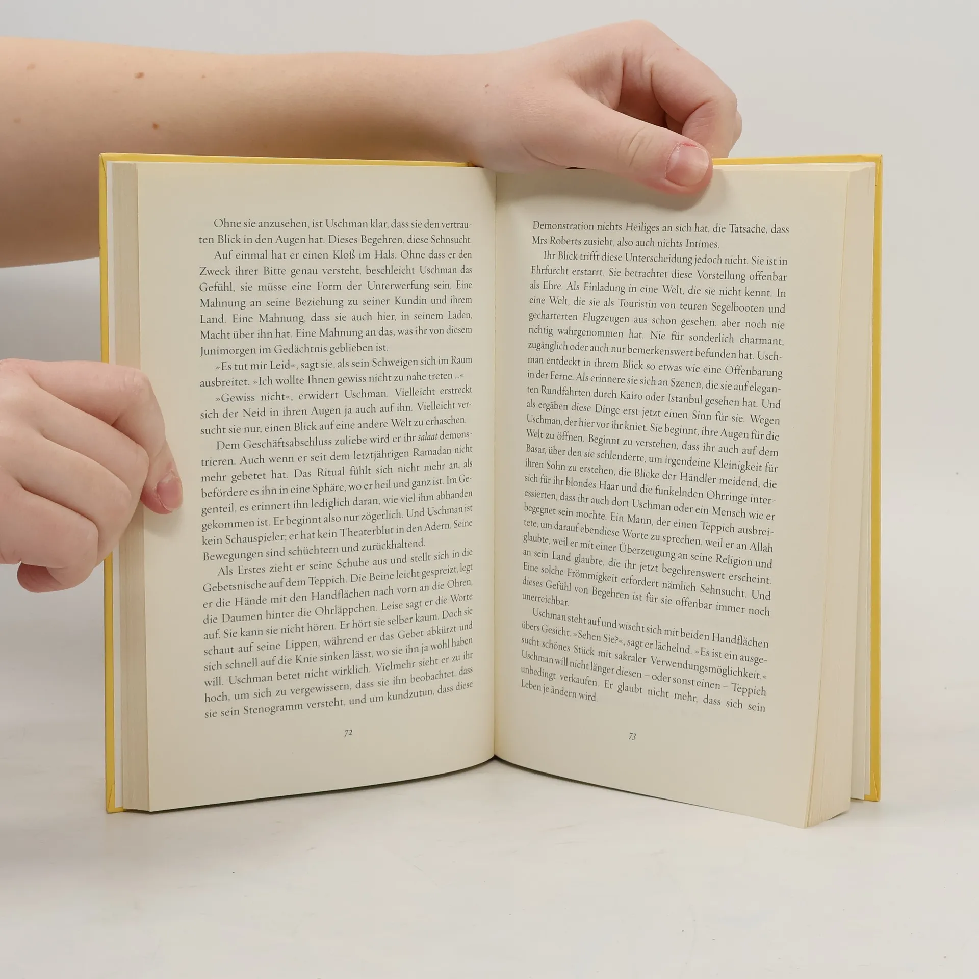 Wenn er seinen Laden schließt und es Zeit wäre, sich mit Freunden den Reizen New Yorks hinzugeben, fährt Uschman allein zum Flughafen. Hier kam er vor drei Jahren an, ein Teppichhändler aus dem Iran. Und hier, das hat er sich seither jeden Tag ausgemalt, wird er seine Frau Farak in die Arme schließen und ihr zeigen, was er mit dem Verkauf der Teppiche aufgebaut hat, die sie ihm regelmäßig aus Tabriz schickt. Obschon der Flughafen, diese große Szenerie der Abschiede und des Wiedersehens, Uschmans Einsamkeit noch einmal potenziert, zieht es ihn immer wieder dorthin - so auch am Tag, an dem er seine Hoffnungen endgültig begraben muss, weil Farak ihm mitteilt, dass sie die Scheidung eingereicht hat, um frei zu sein für einen neuen Mann. Im Augenblick der Verzweiflung begegnet Uschman plötzlich einer sehr jungen Frau, lange beobachten sie einander nur - sie, die hübsche blonde Amerikanerin, und er, der ältere Einwanderer. Aus diesem Blickwechsel entsteht unerwartet und wider jede Vernunft eine Liebesgeschichte, so schön, so anrührend, wie es nur selten vorkommt im Leben und in der Literatur. Mit ungewöhnlicher Stilsicherheit und entwaffnender Lebensweisheit hat Meg Mullins einen berückenden Debütroman vorgelegt, dessen Figuren man nicht wieder vergisst.