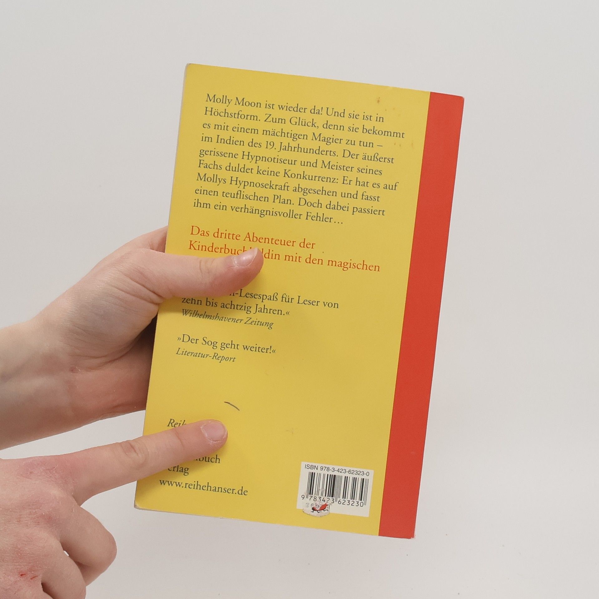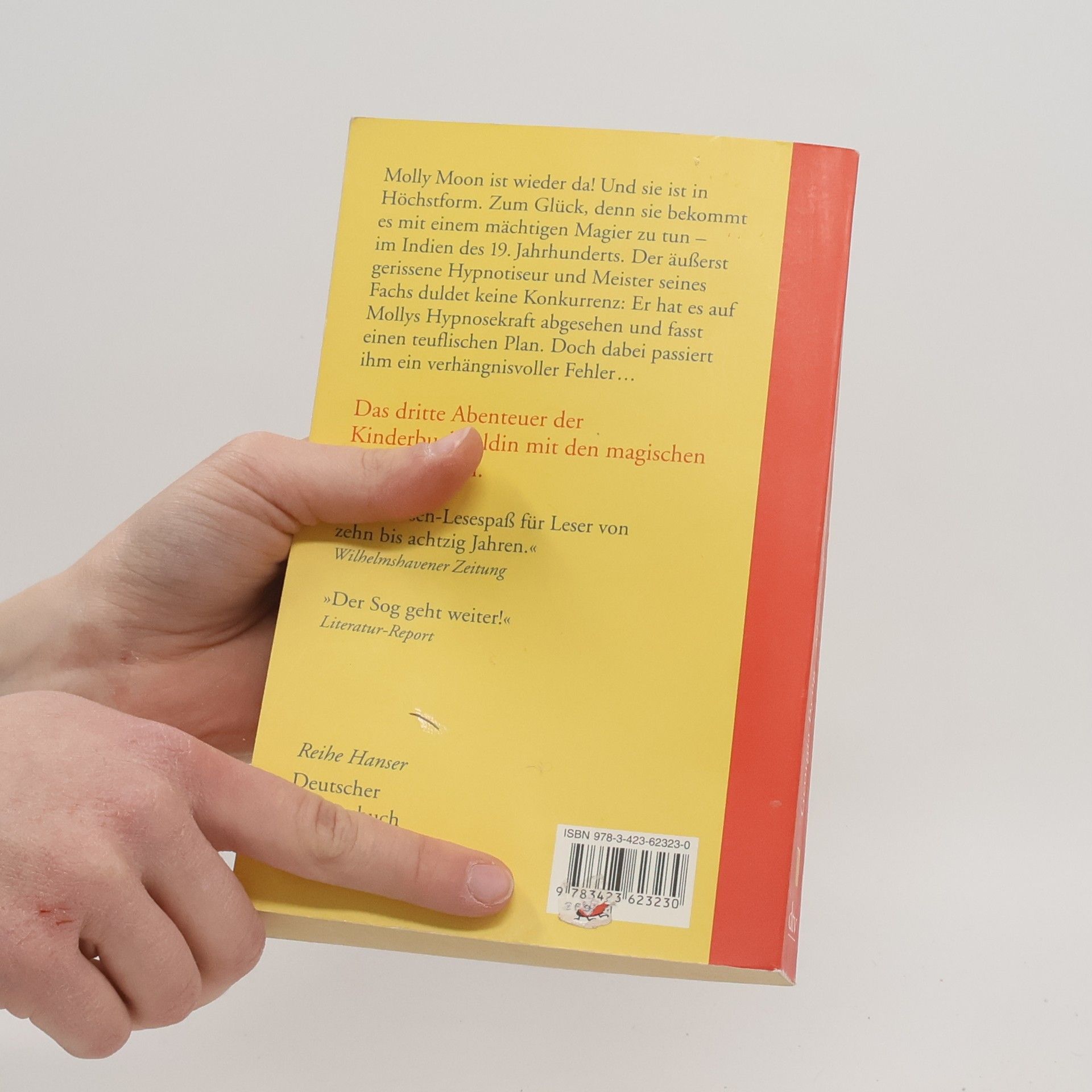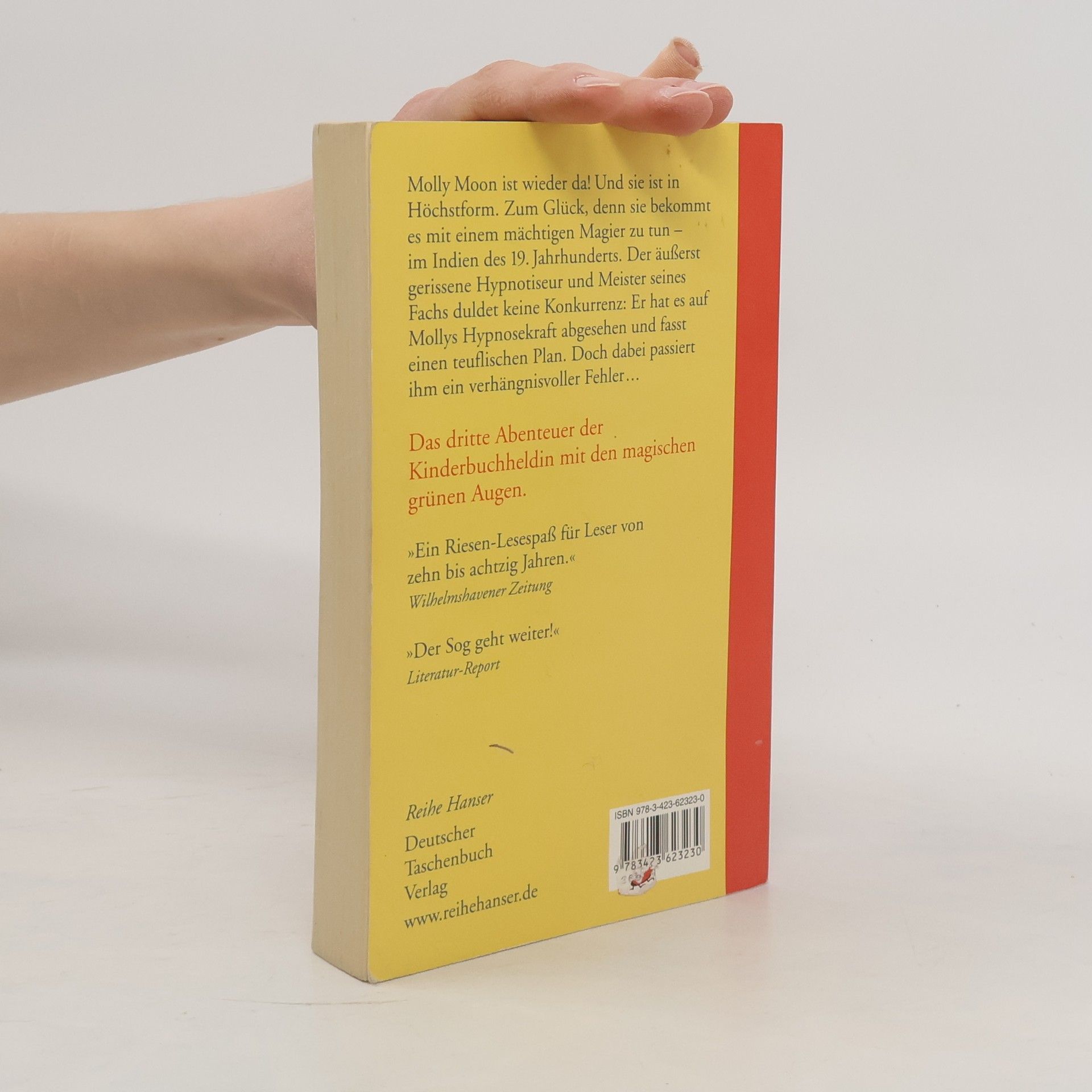 Das dritte Abenteuer der Kinderbuchheldin mit den magischen grünen Augen Molly Moon ist wieder da! Und sie ist in Höchstform. Zum Glück, denn sie bekommt es mit einem mächtigen Magier zu tun. Molly und Rocky sind nach der turbulenten Zeit in Hollywood nach Hause zurückgekehrt. An Ruhe ist trotzdem nicht zu denken: Der neue Gärtner lässt Mopsdame Petula mit einem Knall verschwinden! Bevor Molly mit ihren eigenen magischen Fähigkeiten reagieren kann, knallt es erneut nun ist es Molly selbst, die verschwindet und sich in einer anderen Zeit wieder findet: im Indien des 19. Jahrhunderts, im Palast eines mächtigen Maharadschas! Der Maharadscha ist nicht nur groß wie ein Riese und äußerst leicht reizbar, er ist auch ein mächtiger Magier, der die Fähigkeit hat, in der Zeit vor- und zurückzureisen. Schnell wird Molly klar, dass sie es mit einem äußerst gerissenen Meisterhypnotiseur zu tun hat.