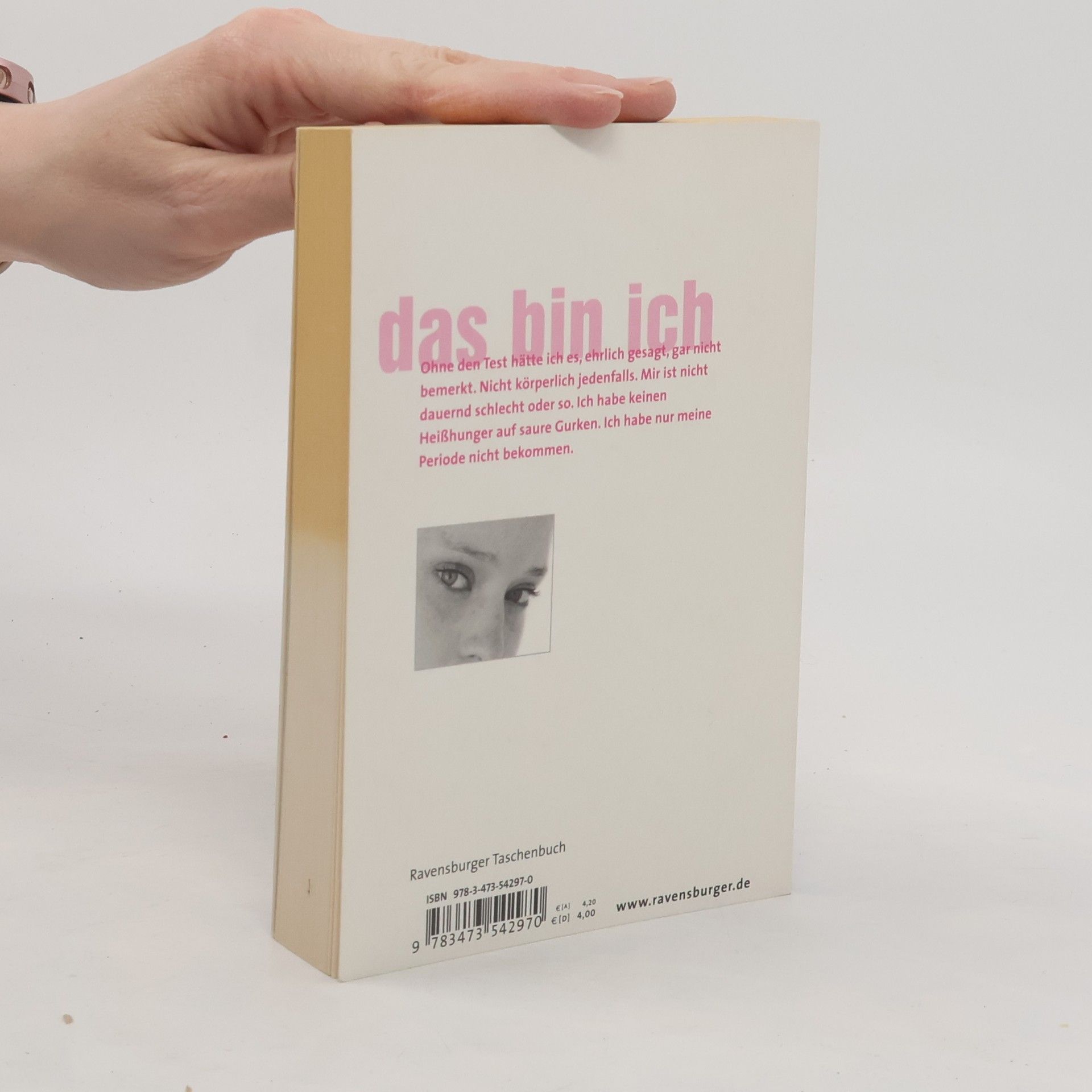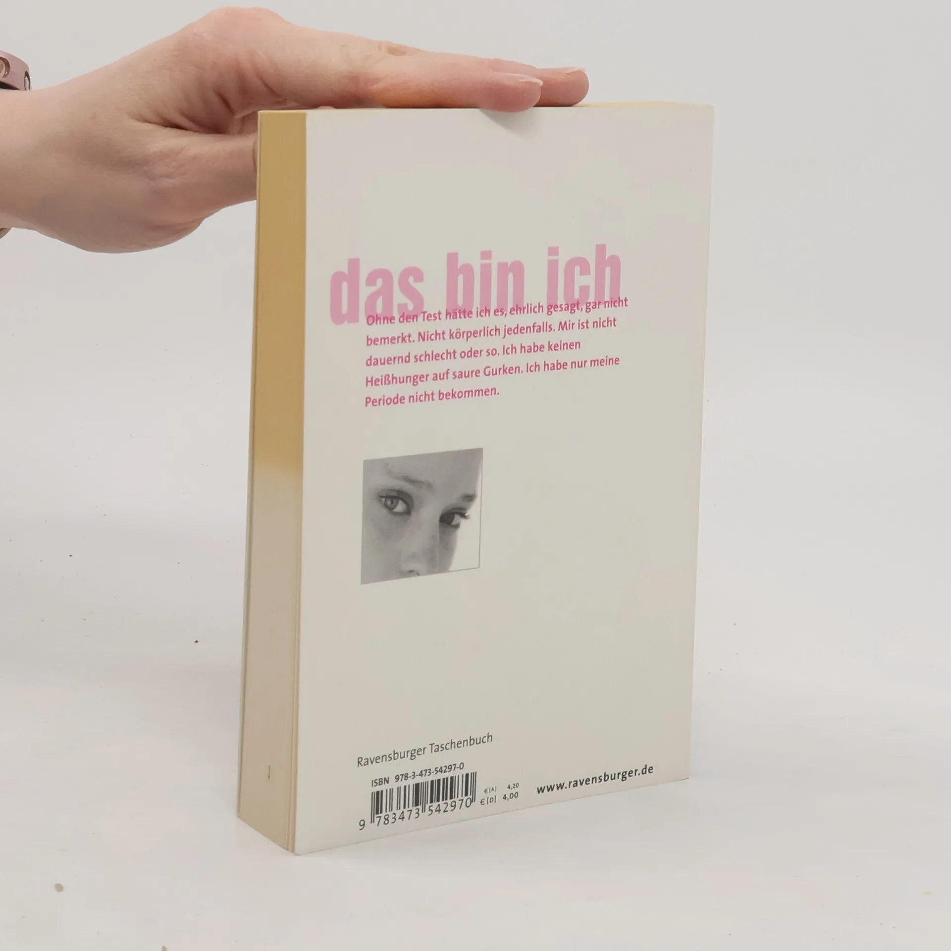„Ohne den Test hätte ich es, ehrlich gesagt, gar nicht bemerkt. Nicht körperlich jedenfalls. Mir ist nicht dauernd schlecht oder so. Ich habe keinen Heißhunger auf saure Gurken. Ich habe nur meine Periode nicht bekommen.“