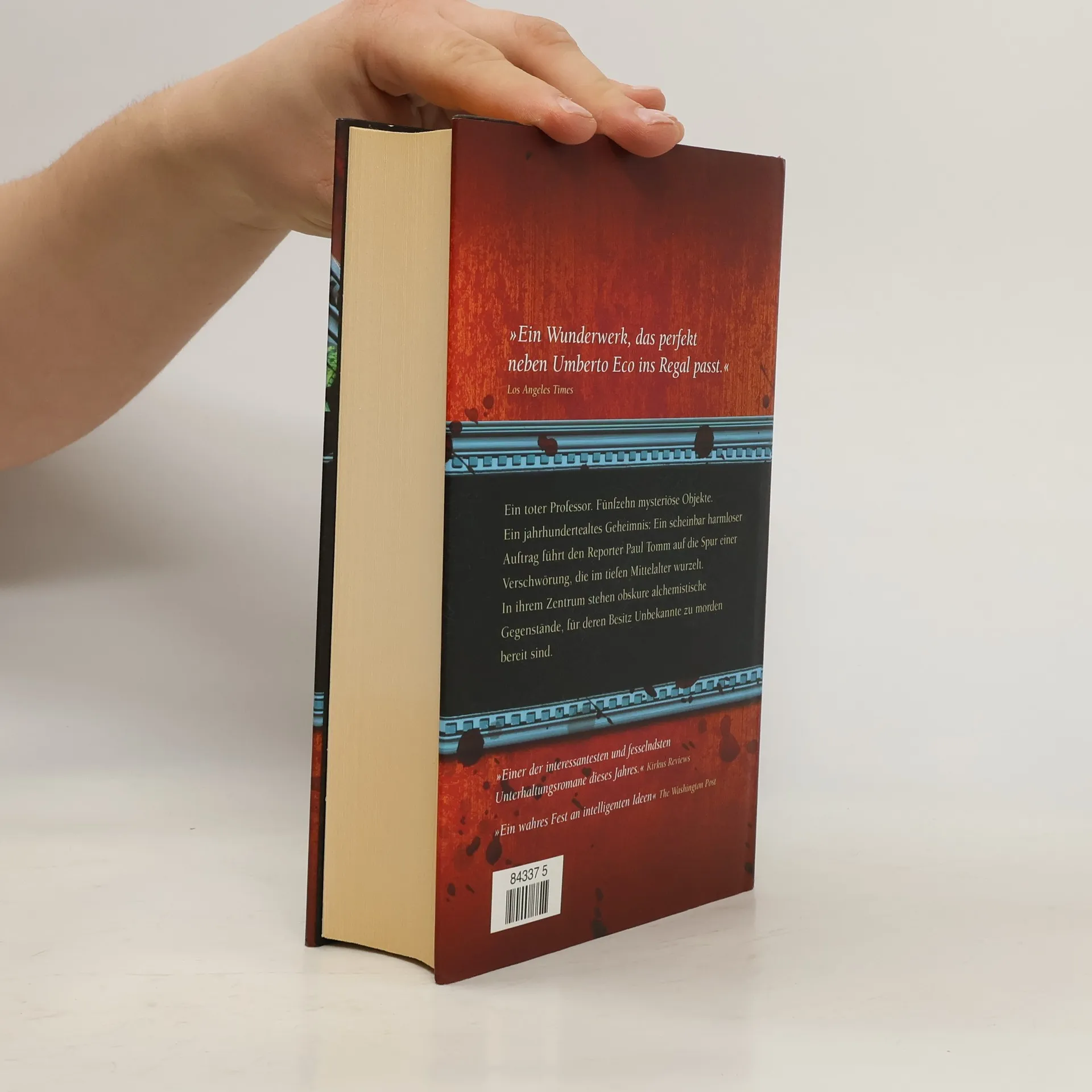 Ein toter Professor. Fünfzehn okkulte Objekte. Ein jahrhundertealtes Geheimnis: Ein scheinbar harmloser Auftrag führt den Reporter Paul Tomm auf die Spur einer Verschwörung, die im tiefen Mittelalter wurzelt. In ihrem Zentrum stehen mysteriöse alchemistische Gegenstände, für deren Besitz Unbekannte zu morden bereit sind. „Ein Wunderwerk. das perfekt neben Umberto Eco ins Regal passt.“ Los Angeles Times „Einer der interessantesten und fesselndsten Unterhaltungsromane dieses Jahres.“ Kirkus Reviews „Ein wahres Fest an intelligenten Ideen.“ The Washington Post