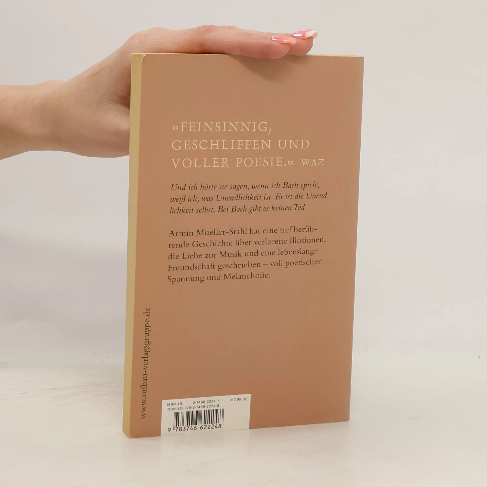 „Feinsinnig, geschliffen und voller Poesie.“ WAZ Und ich hörte sie sagen, wenn ich Bach spiele, weiß ich, was Unendlichkeit ist. Er ist die Unendlichkeit selbst. Bei Bach gibt es keinen Tod. Armin Mueller-Stahl hat eine tief berührende Geschichte über verlorene Illusionen, die Liebe zur Musik und eine lebenslange Freundschaft geschrieben - voll poetischer Spannung und Melancholie.