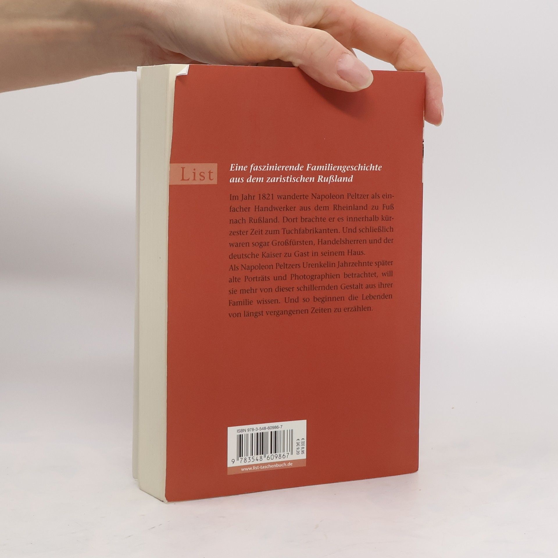Im Jahr 1821 wanderte Napoleon Peltzer als einfacher Handwerker aus dem Rheinland zu Fuß nach Russland. Dort brachte er es innerhalb kürzester Zeit zum Tuchfabrikanten. Bald darauf waren sogar Großfürsten, Handelsherren und der deutsche Kaiser zu Gast in seinem Haus. Als Napoleon Peltzers Urenkelin Jahrzehnte später alte Porträts und Fotografien betrachtet, will sie mehr von dieser schillernden Gestalt aus ihrer Familie wissen. Und so beginnen die Lebenden von längst vergangenen Zeiten zu erzählen.
