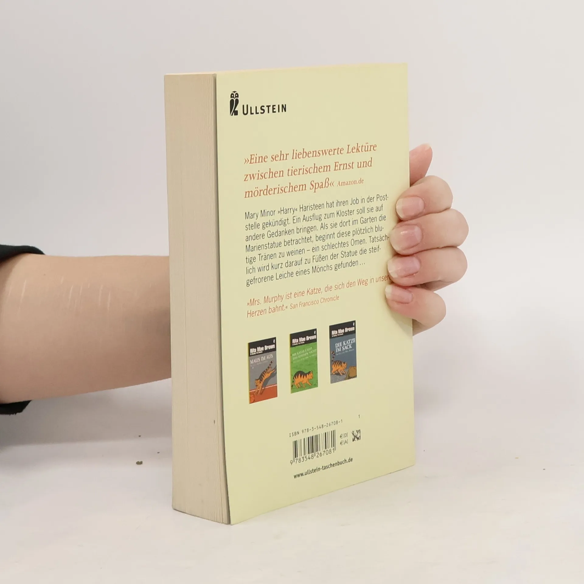 Mary Minor »Harry« Haristeen hat ihren Job in der Poststelle gekündigt. Ein Ausflug zum Kloster soll sie auf andere Gedanken bringen. Als sie dort im Garten die Marienstatue betrachtet, beginnt diese plötzlich blutige Tränen zu weinen – ein schlechtes Omen. Tatsächlich wird kurz darauf zu Füßen der Statue die steifgefrorene Leiche eines Mönchs gefunden …