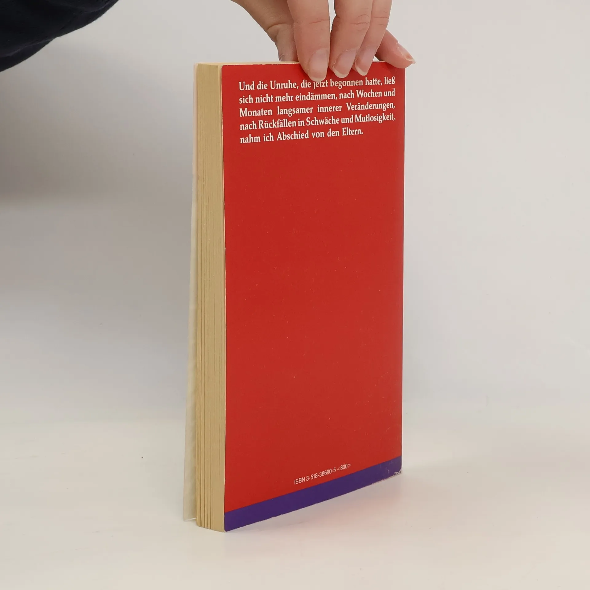 "Und die Unruhe, die jetzt begonnen hatte, ließ sich nicht mehr eindämmen, nach Wochen und Monaten langsamer innerer Veränderungen, nach Rückfällen in Schwäche und Mutlosigkeit, nahm ich Abschied von den Eltern." Dieses Buch handelt vom Zauber und von den Abgründen der Kindheit, vom schmerzhaften Prozeß des Wachstums, der unausweichlichen Loslösung von den anderen. Es ist das Protokoll einer Selbstbefreiung. Peter Weiss schrieb die Erzählung 1960/61.