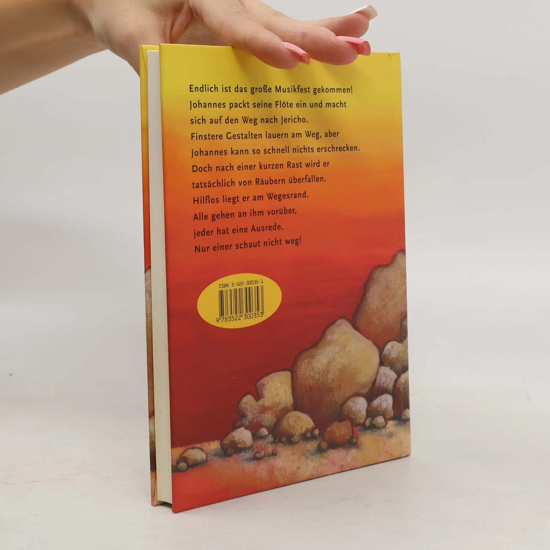 Endlich ist das große Drommetenfest gekommen. Lukas packt seine Flöte ein und macht sich auf den Weg nach Jericho. Finstere Gestalten sollen am Wegrand lauern, aber Lukas kann so schnell nichts erschrecken. Doch halt, war da nicht ein Rascheln.? Das Gleichnis vom barmherzigen Samariter neu erzählt. Ab 8