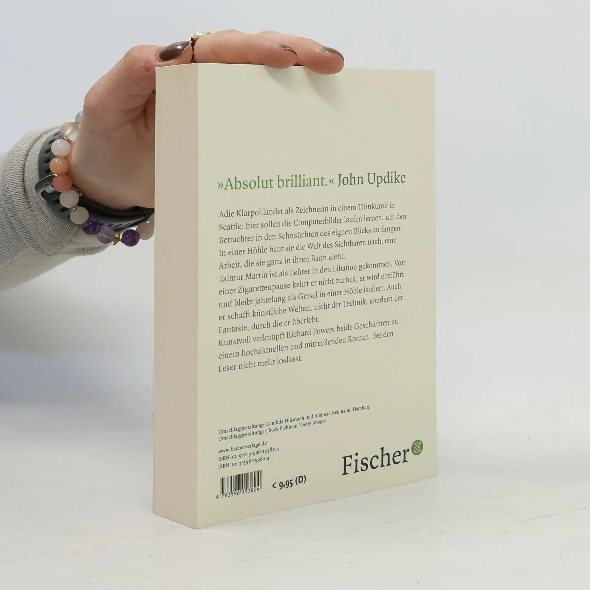 Adie Klarpol landet als Zeichnerin in einem Computerlabor in Seattle: hier sollen die Computerbilder laufen lernen, um den Betrachter in den Sehnsüchten des eignen Blicks zu fangen. Taimur Martin ist Lehrer im Libanon. Von einer Zigarettenpause kehrt er nicht zurück, bleibt jahrelang als Geisel in einer Höhle isoliert. Auch er schafft künstliche Welten, nicht der Technik, sondern der Fantasie. Kunstvoll wie eine Doppelhelix und mit aktueller Brisanz verknüpft Richard Powers beide Geschichten zu einer Vision über den Verlust der Sinnlichkeit im leeren Sog der Logarithmen und zu einer Liebesgeschichte, deren Spannung und Poesie den Leser nicht mehr loslässt.