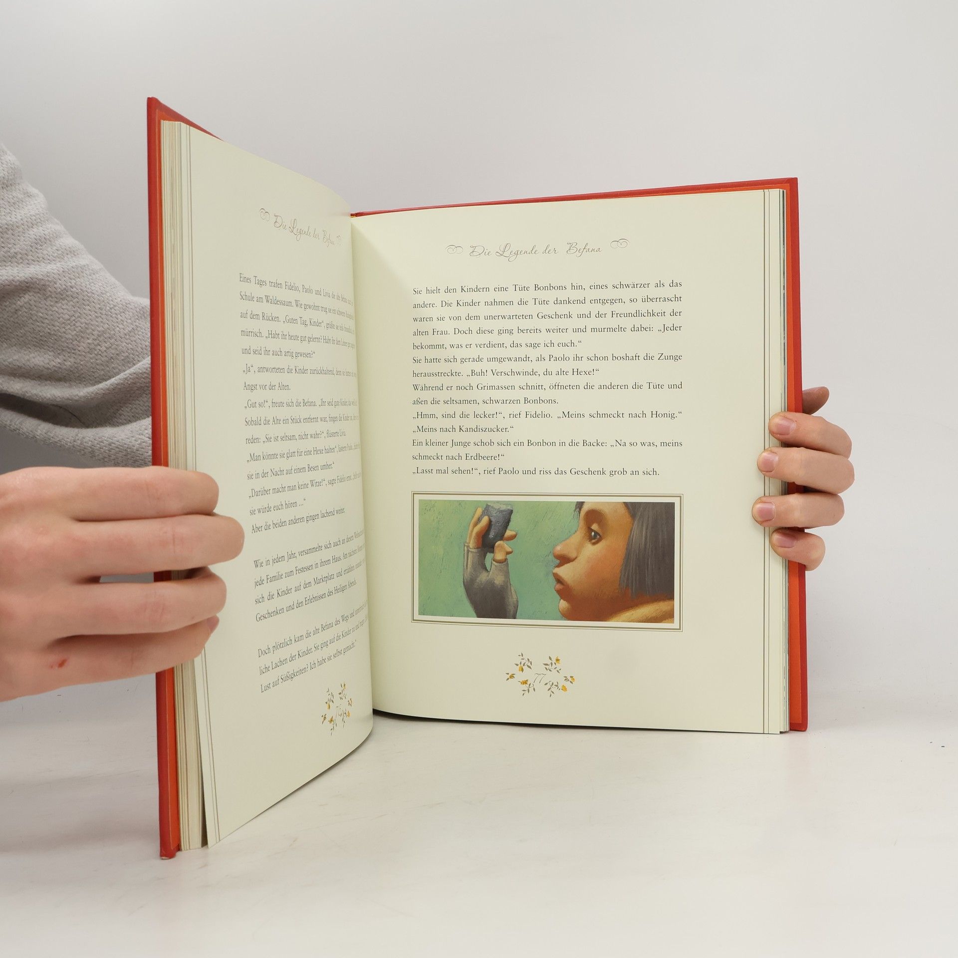 Erzählen, rezitieren, singen rund um Weihnachten: In dieser Sammlung finden wir Vertrautes wie Andersens Geschichte 'Das Mädchen mit den Schwefelhölzchen', Rilkes Gedicht 'Advent', die Lieder 'Leise rieselt der Schnee', 'Stille Nacht, heilige Nacht'. Daneben steht weniger Bekanntes wie 'Die wundersame Legende des weisen Ichilok', eine Geschichte über einen Indianer, der dem Stern am Himmel als vierter König folgt und im Verborgenen seine Geschenke den Bedürftigen bringt, 'Scouarn, der Bretone', oder 'Die Legende der Befana', zwei spannende Zaubermärchen rund um Weihnachten. Während die Geschichten interessant sind, müssten meiner Meinung nach die bekannten Weihnachtslieder hier nicht auch noch abgedruckt sein. Ansonsten ist dieser Band mit den gemalten Farbbildern verschiedener Illustrator/-innen, goldenen Überschriften und eingefassten Anfangslettern sehr liebevoll ausgestattet. Ein schönes Buch, das man gern in die Hand nimmt. Ab 6 Jahren, ausgezeichnet, Denise Racine.