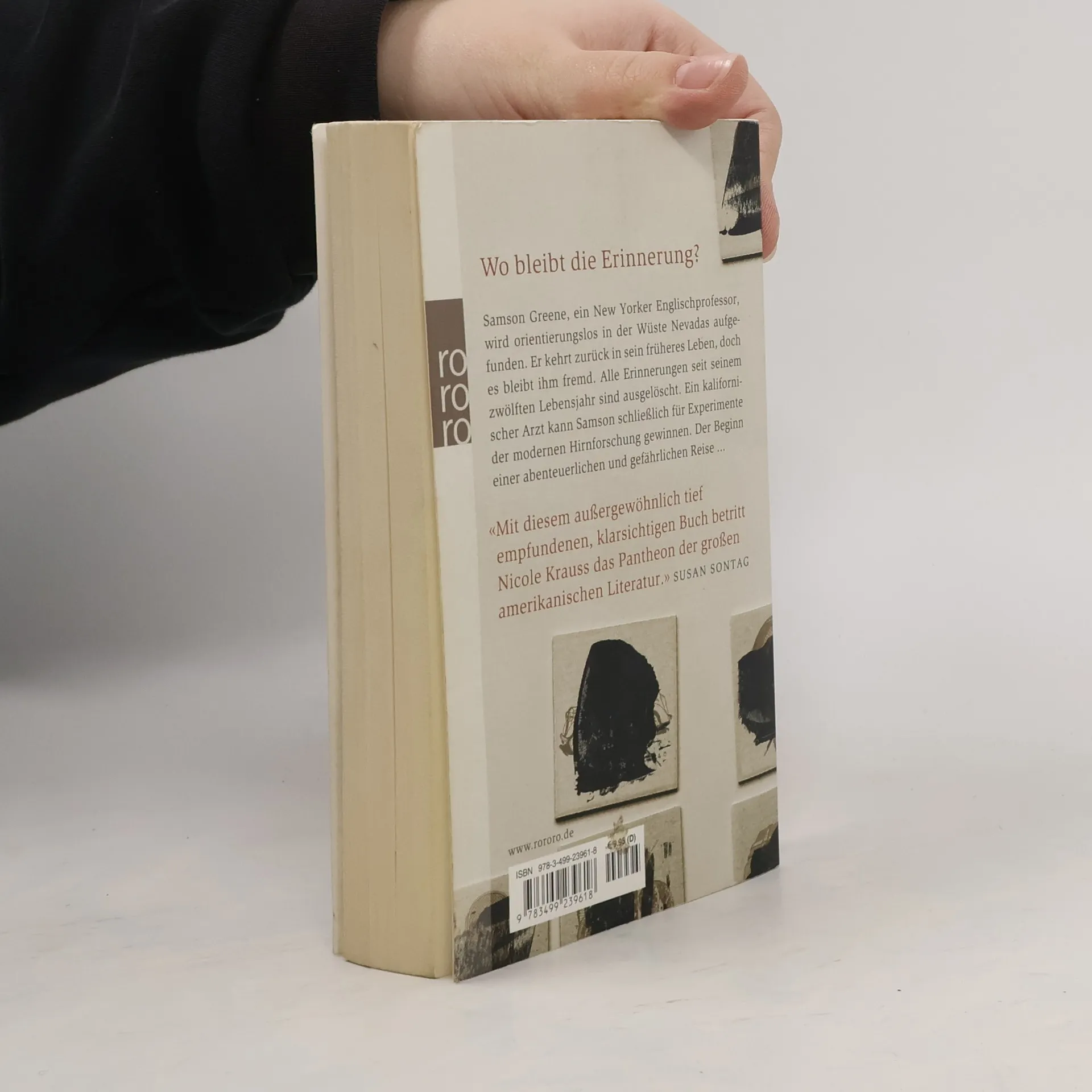 Wo bleibt die Erinnerung?Samson Greene, ein New Yorker Englischprofessor, wird orientierungslos in der Wüste Nevadas aufgefunden. Er kehrt zurück in sein früheres Leben, doch es bleibt ihm fremd. Alle Erinnerungen seit seinem zwölften Lebensjahr sind ausgelöscht. Ein kalifornischer Arzt kann Samson schließlich für Experimente der modernen Hirnforschung gewinnen. Der Beginn einer abenteuerlichen und gefährlichen Reise ...„Mit diesem außergewöhnlich tief empfundenen, klarsichtigen Buch betritt Nicole Krauss das Pantheon der großen amerikanischen Literatur.“ (Susan Sontag)