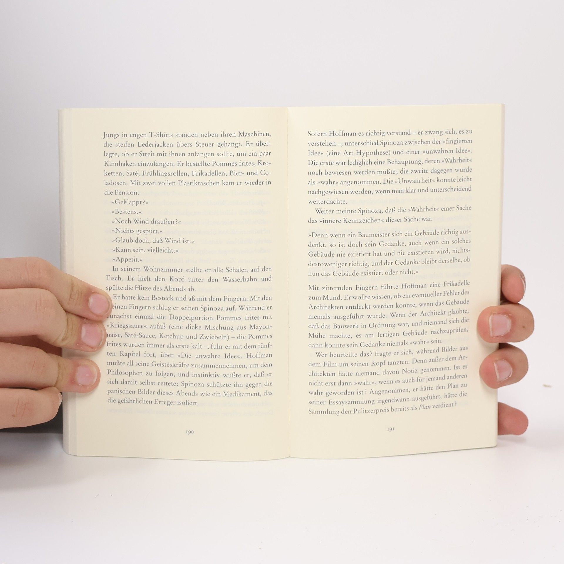 In einer spannenden Spionage-Geschichte kreuzen sich die Schicksale dreier Männer: Felix Hoffman, niederländischer Botschafter in Prag, der seinen leiblichen und metaphysischen Hunger mit Essen und Spinoza stillt, Freddy Mancini, Zeuge einer Entführung, John Marks, amerikanischer Ostblockspezialist. Zugleich die Geschichte von Europa 1989, das sich eint und berauscht im Konsum. Ein Rausch, der nur in einem Kater enden kann.