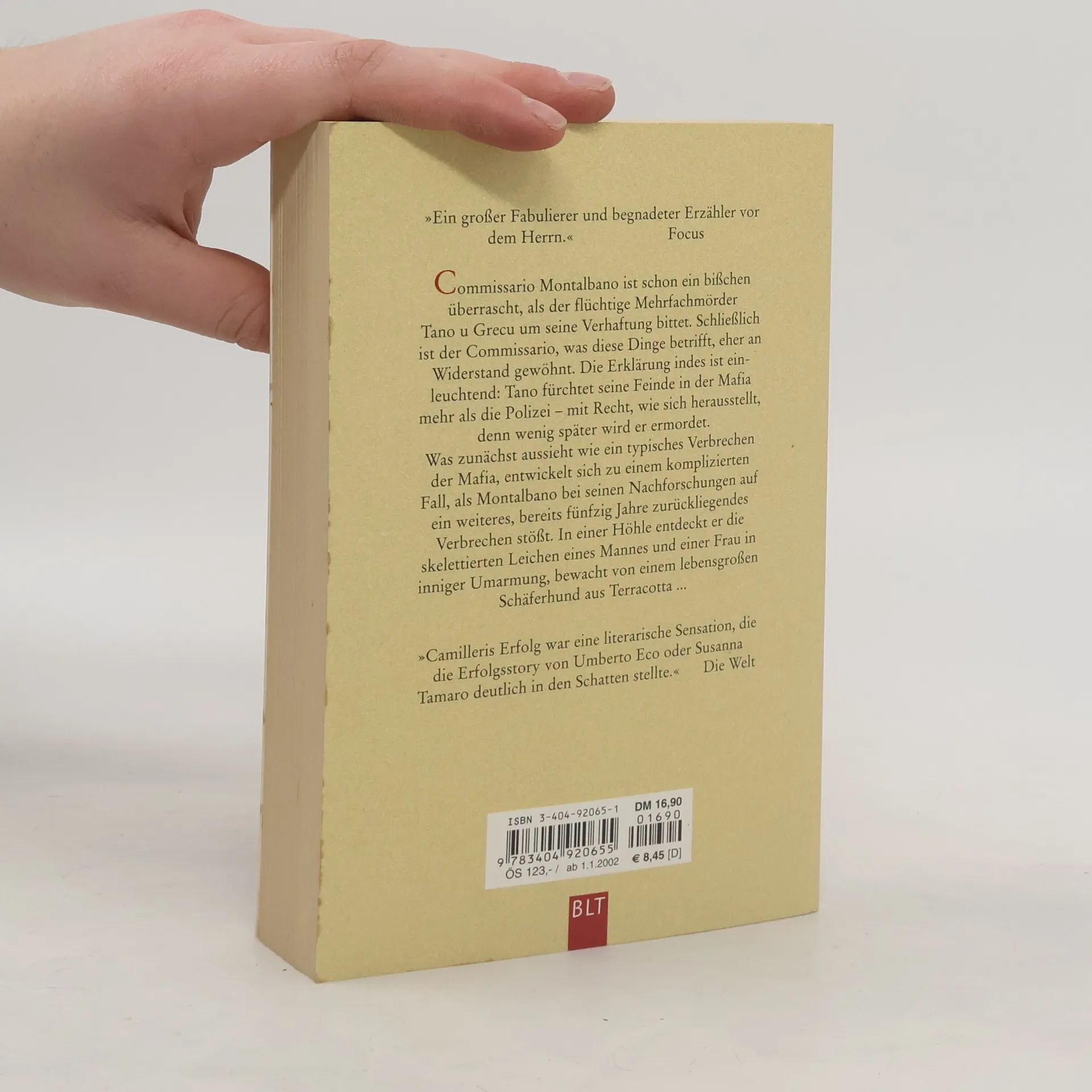 Commissario Montalbano ist schon ein bißchen überrascht, als der flüchtige Mehrfachmörder Tano u Grecu um seine Verhaftung bittet. Schließlich ist der Commissario, was diese Dinge betrifft, eher an Widerstand gewöhnt. Die Erklärung indes ist einleuchtend: Tano fürchtet seine Feinde in der Mafia mehr als die Polizei ? mit Recht, wie sich herausstellt, denn wenig später wird er ermordet. Was zunächst aussieht wie ein typisches Verbrechen der Mafia, entwickelt sich zu einem komplizierten Fall, als Montalbano bei seinen Nachforschungen auf ein weiteres, bereits fünfzig Jahre zurückliegendes Verbrechen stößt. In einer Höhle entdeckt er die skelettierten Leichen eines Mannes und einer Frau in inniger Umarmung, bewacht von einem lebensgroßen Schäferhund aus Terracotta ... Commissario Montalbano löst seinen zweiten Fall.