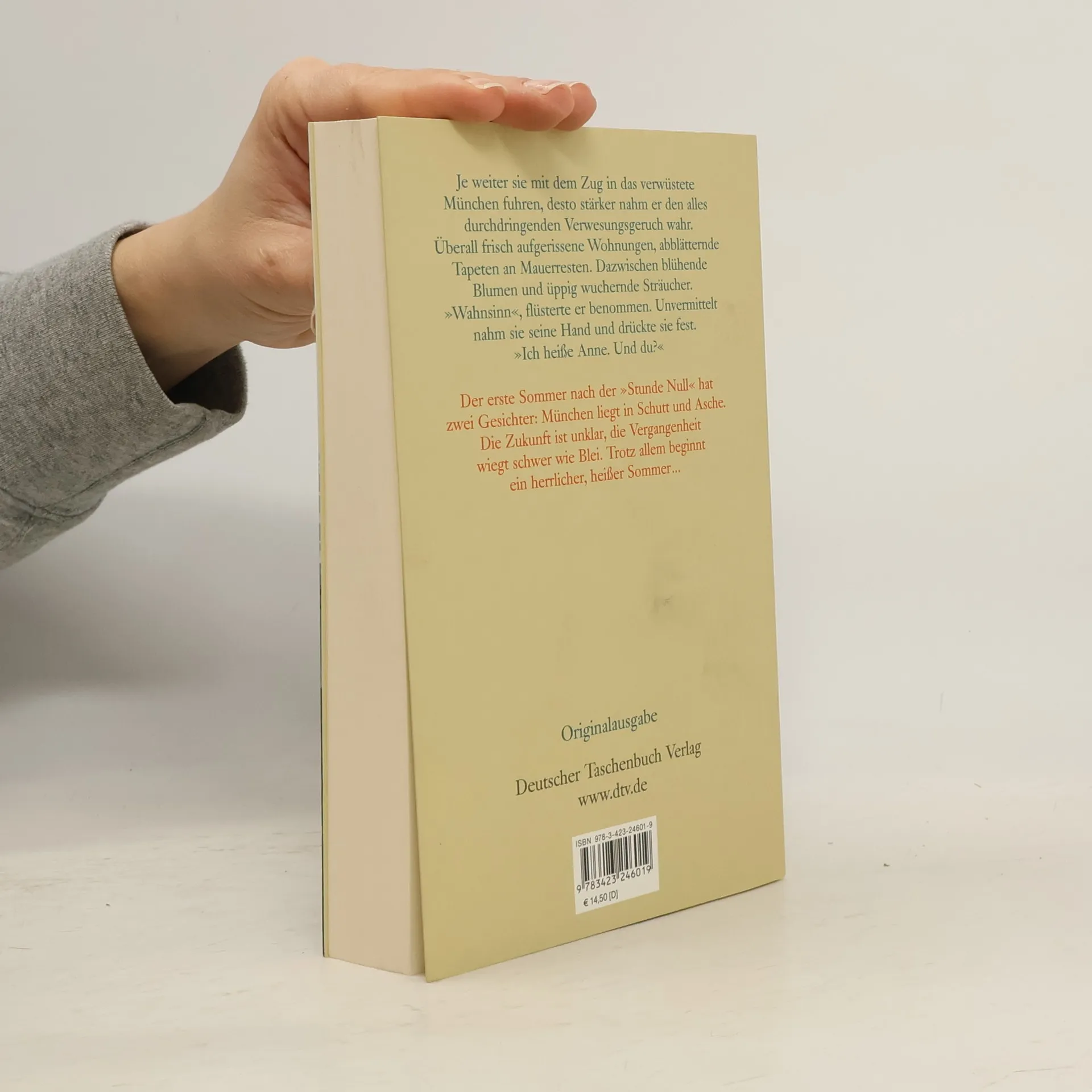 Je weiter sie mit dem Zug in das verwüstete München fuhren, desto stärker nahm er den alles durchdringenden Verwesungsgesruch wahr. Überall frisch aufgerissene Wohnungen, abblätternde Tapeten an Mauerresten. Dazwischen blühende Blumen und üppig wuchernde Sträucher. »Wahnsinn«, flüsterte er benommen. Unvermittelt nahm sie seine Hand und drückte sie fest. »Ich heiße Anne. Und du?« Der erste Sommer nach der »Stunde Null« hat zwei Gesichter: München liegt in Schutt und Asche. Die Zukunft ist unklar, die Vergangenheit wiegt schwer wie Blei. Trotz allem beginnt ein herrlicher, heißer Sommer...