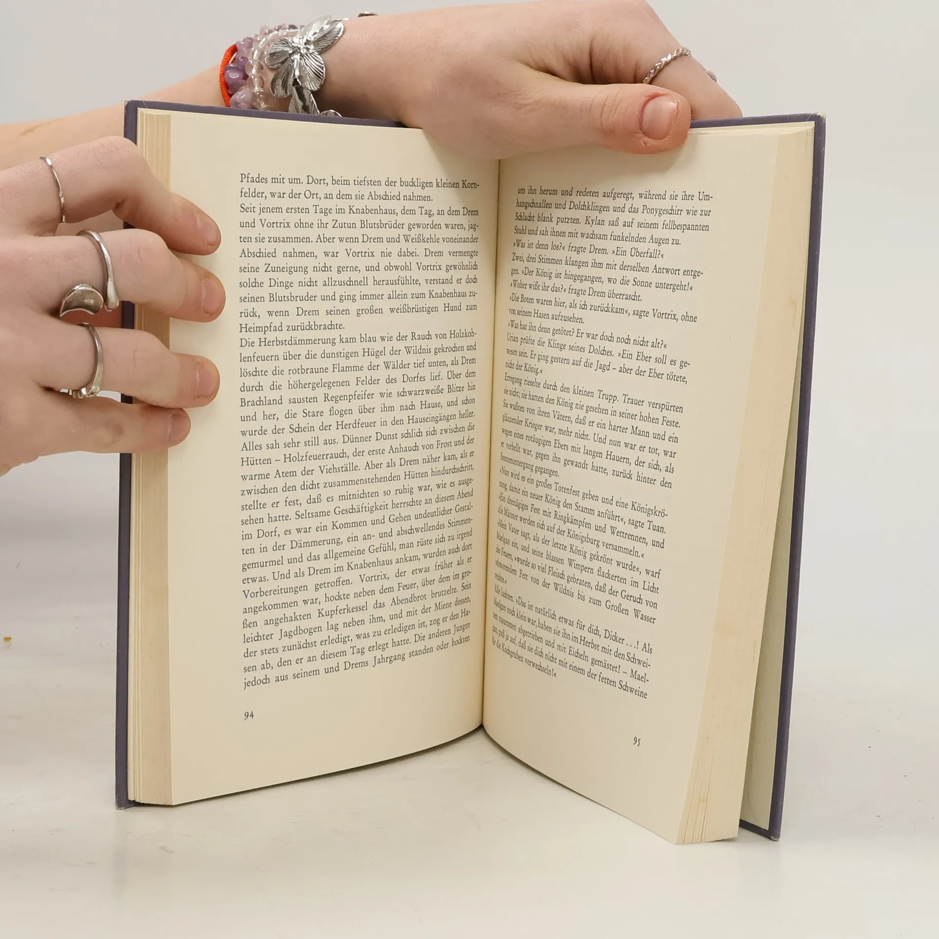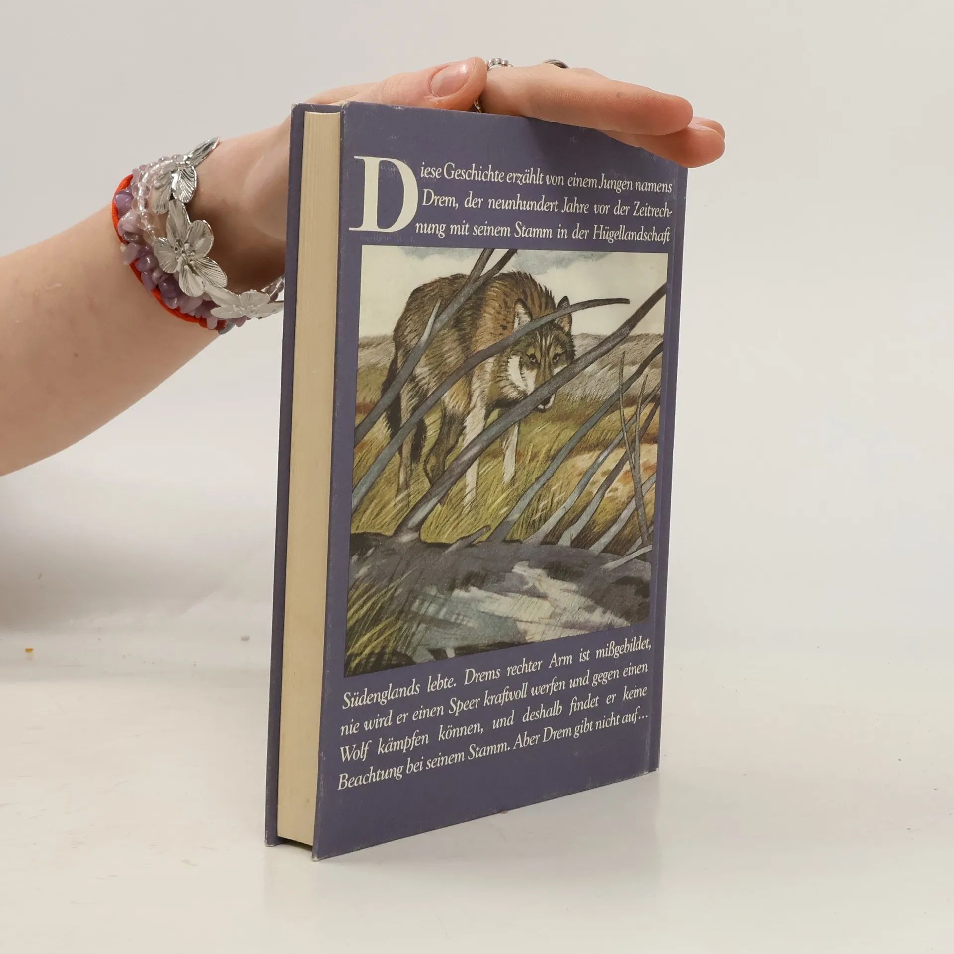 Scharlachrot ist die Farbe der Krieger. Und tragen darf sie nur, wer einen Wolf getötet hat. Wie soll das Drem gelingen, dem Jungen, der nur seinen linken Arm gebrauchen kann? Mit Kraft, Geschicklichkeit und ungeheurem Mut erkämpft sich der Außenseiter einen Platz unter seinen Speerbrüdern. Der Häuptlingssohn Vortrix wird sein engster Freund. Und dann – steht er allein seinem Wolf gegenüber. Eine schöne, poetische und tief beeindruckende Geschichte, die ein lebhaftes Bild vom Leben in der Bronzezeit gibt.