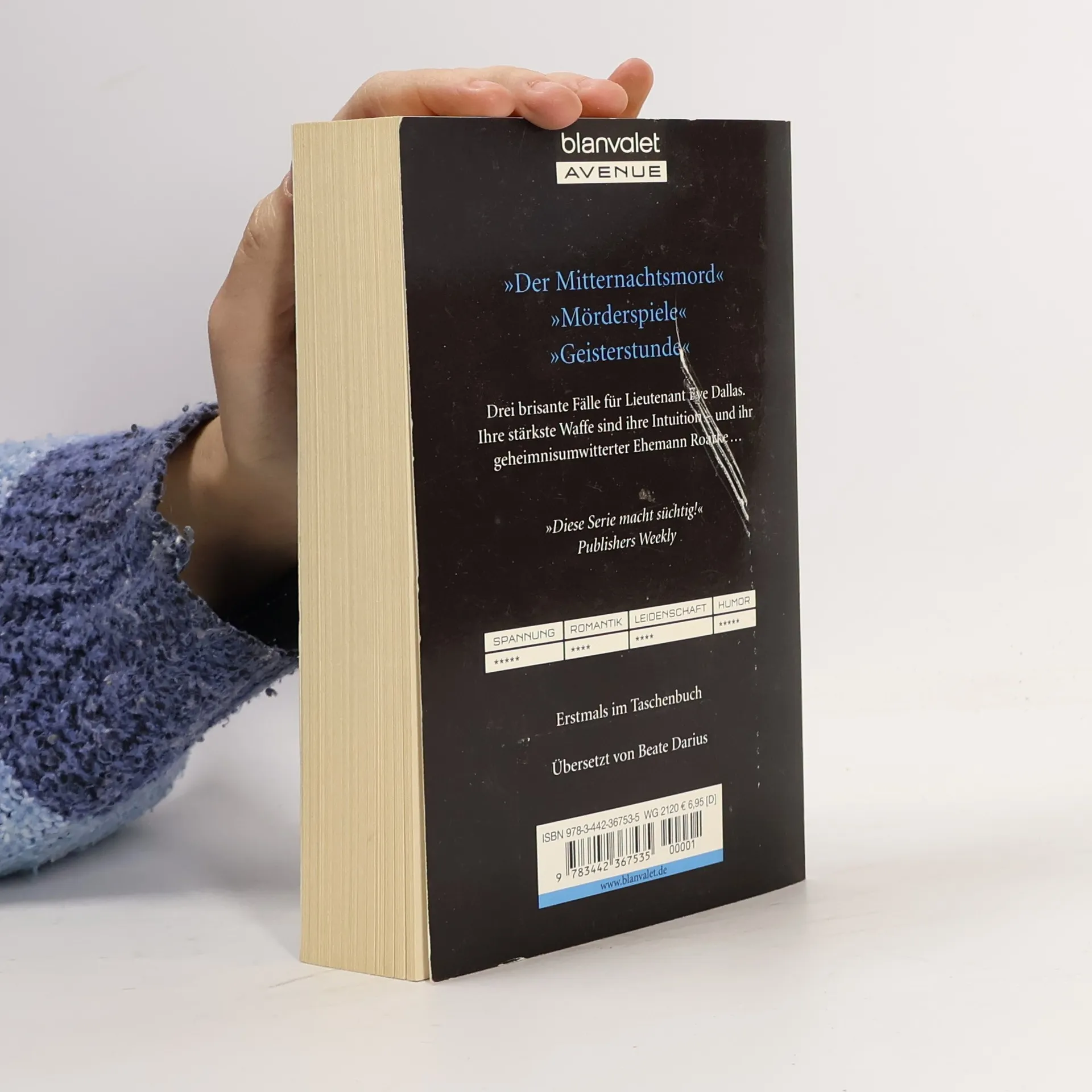 Sehnsüchtig von Millionen J. D. Robb- Lesern erwartet: drei Fälle für Lieutenant Eve Dallas – bei ihren Ermittlungen natürlich tatkräftig unterstützt von ihrem geheimnisumwobenen Ehemann Roarke. Der Mitternachtsmord Lieutenant Eve Dallas und Roarke feiern ihr erstes gemeinsames Weihnachten, aber ausgerechnet da wird Eve zu einem Mordfall gerufen. Ein angesehener Richter wurde brutal gefoltert und ermordet. Eve kennt den Mörder. Vor Jahren hat sie geholfen, David Palmer hinter Gitter zu bringen, aber jetzt ist der Killer geflohen. Am Tatort hat er eine Liste mit den Namen seiner nächsten Opfer hinterlassen. Auch Eves Name steht darauf ... Mörderspiele Lieutenant Eve Dallas hasst es, zu reisen. Aber was nimmt man für eine Weiterbildung nicht alles in Kauf? Und dann soll sie auch noch einen Vortrag halten, was ihr gar nicht gefällt. Alles jedoch ändert sich, als am Tagungsort ein Toter gefunden wird, der Bodyguard eines hohen Beamten der New Yorker Polizei. Jemand will unbedingt fälschlich den Verdacht auf Eves Ehemann Roarke lenken und Eve ahnt den Grund: Noch nie hat man es geschafft, ihn eines Verbrechens zu überführen. Eves Kampfwille erwacht … Geisterstunde Der Club „Number Twelve“ ist in New York eine Legende – ein Monument aus dem vergangenen Jahrhundert in New York. Heute soll es dort spuken, angeblich ist der Ort verflucht. Ausgerechnet dort muss Lieutenant Eve Dallas aber den Mord an Radcliff Hopkins untersuchen, dem neuen Besitzer und Enkel jenes Mannes, der „Number Twelve“ berühmt gemacht hat. Er ist erschossen worden, mit einer Pistole, wie es sie nur noch in Museen gibt. Obwohl alle um sie herum von übernatürlichen Kräften reden, lässt sich die pragmatische Eve von Gespenstern nicht ablenken. Allerdings wird der Fall doch bizarr, als sie plötzlich eine Verbindung zu dem nie aufgeklärten Verschwinden eines Rockstars vor 85 Jahren feststellt … Lust auf noch mehr spannende Kurzkrimis von J. D. Robb? Dann lesen Sie auch »Mörderlied« und »Mörderstunde«!