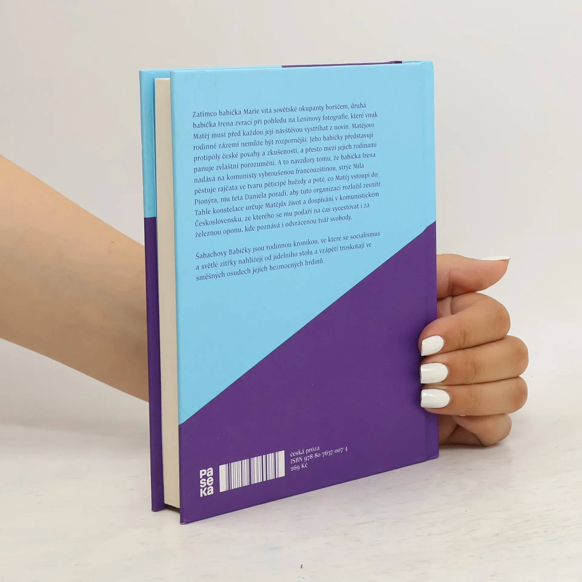 Zatímco babička Marie vítá sovětské okupanty borščem, druhá babička Irena zvrací při pohledu na Leninovy fotografie, které vnuk Matěj musí před každou její návštěvou vystříhat z novin. Matějovo rodinné zázemí nemůže být rozpornější. Jeho babičky představují protipóly české povahy a zkušenosti, a přesto mezi jejich rodinami panuje zvláštní porozumění. A to navzdory tomu, že babička Irena nadává na komunisty vybroušenou francouzštinou, strýc Míla pěstuje rajčata ve tvaru pěticípé hvězdy a poté, co Matěj vstoupí do Pionýra, mu teta Daniela poradí, aby tuto organizaci rozložil zevnitř. Tahle konstelace určuje Matějův život a dospívání v komunistickém Československu, ze kterého se mu podaří na čas vycestovat i za železnou oponu, kde poznává i odvrácenou tvář svobody. Šabachovy Babičky jsou rodinnou kronikou, ve které se socialismus a světlé zítřky nahlížejí od jídelního stolu a vzápětí troskotají ve směšných osudech jejích bezmocných hrdinů.