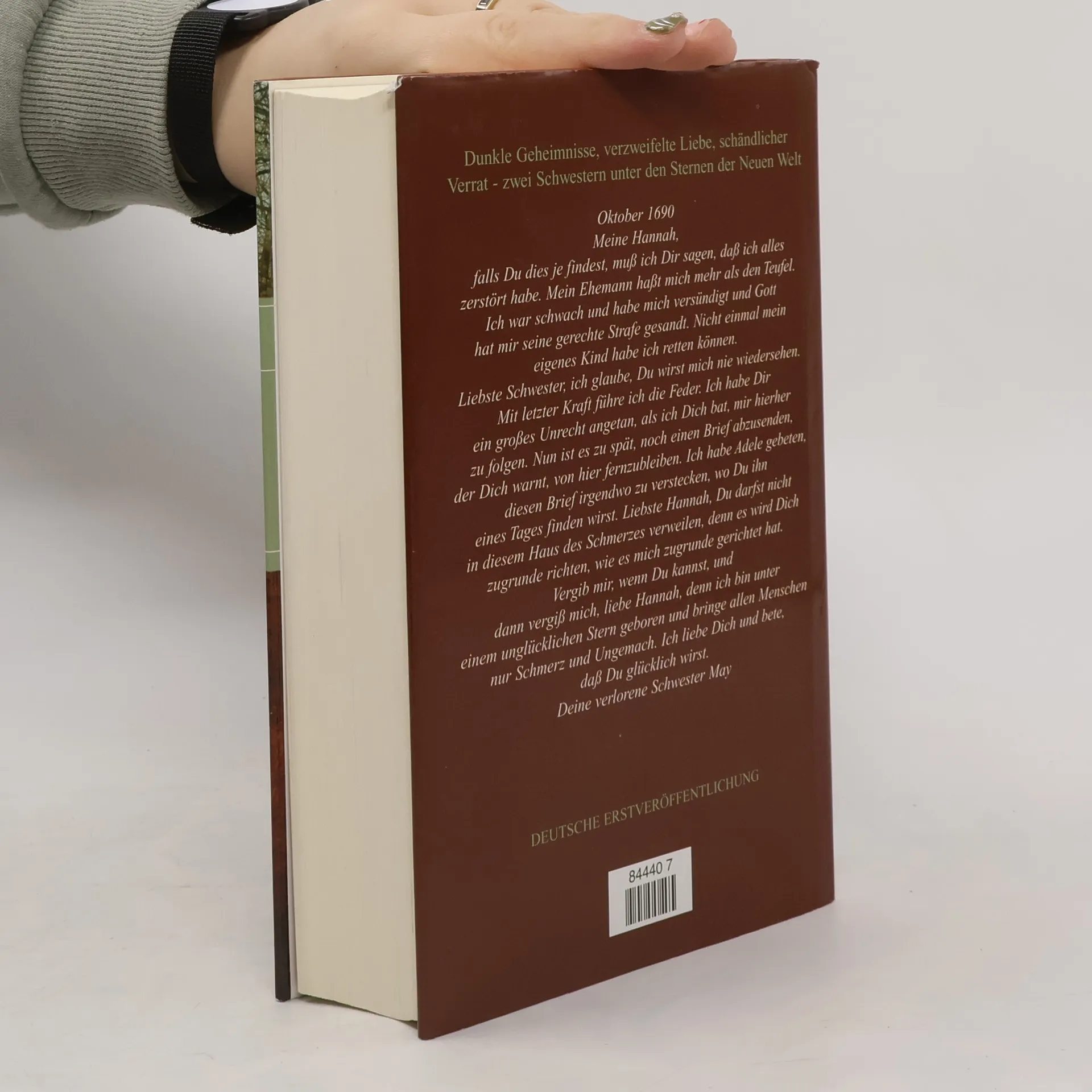 Ein großer historischer Roman um zwei ungleiche Schwestern, die in der Neuen Welt ihr Glück zu finden hoffen England 1689: Die ersehnte Reise nach Amerika beginnt für die lebenslustige May voller Hoffnung und endet unter ungeklärten Umständen mit ihrem Tod. Mays Schwester Hannah, klug und in den Wissenschaften bewandert, reist ihr hinterher, in der Hoffnung, das Rätsel doch noch zu lösen. Hannah versucht, die Umstände von Mays Tod zu begreifen und verliebt sich in einen Mann, der offensichtlich mehr weiß, als er zu sagen bereit ist.