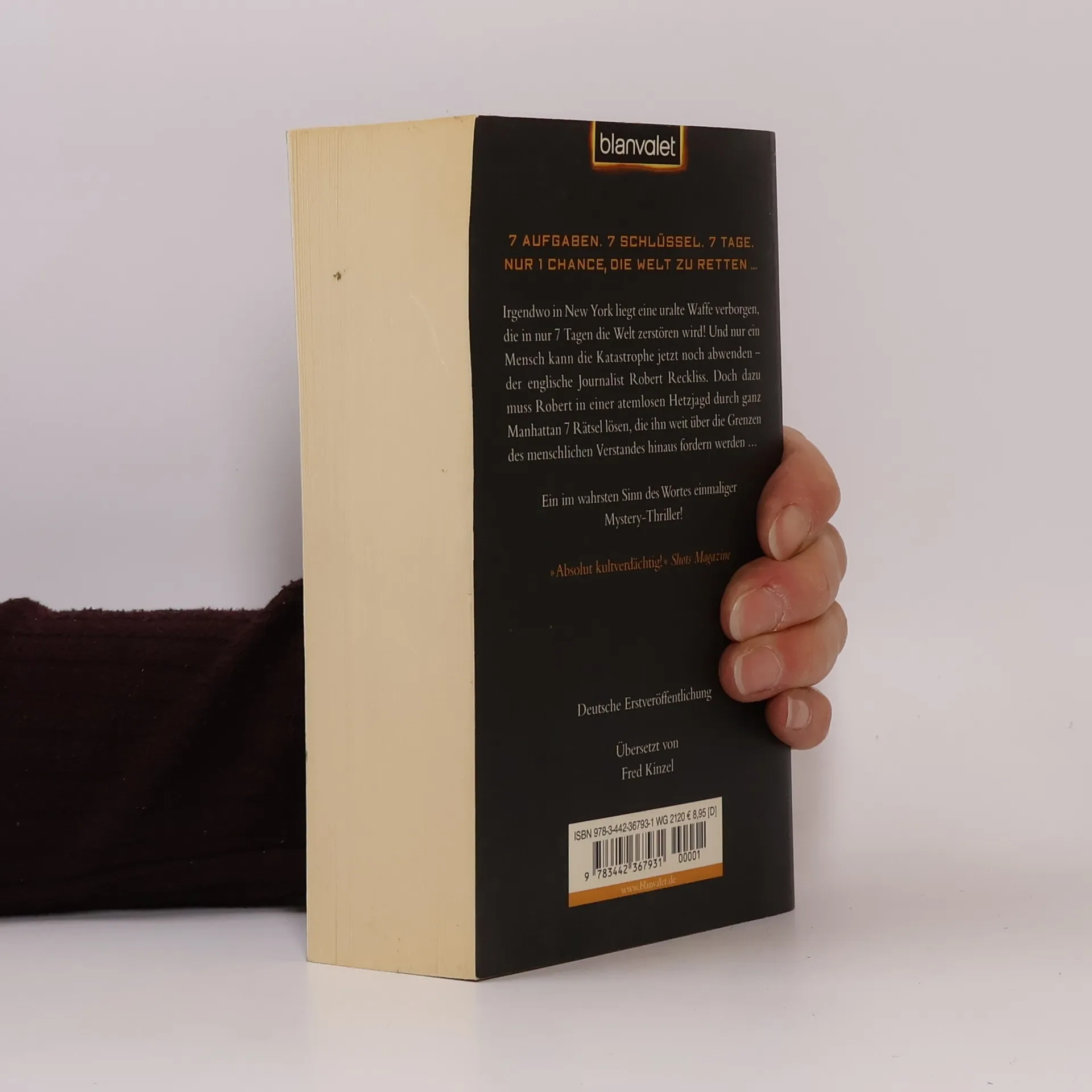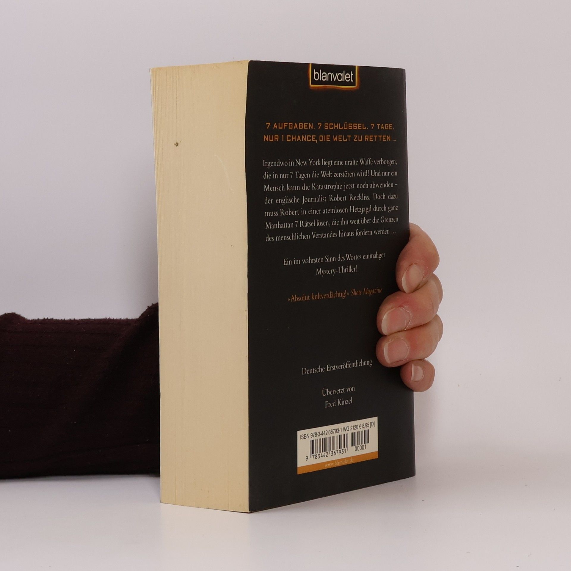 7 Aufgaben. 7 Schlüssel. 7 Tage. Nur 1 Chance, die Welt zu retten … Ein einmaliger Mystery-Thriller! - Irrwitzig spannend, faszinierend unheimlich und hochintelligent konstruiert. Eine mysteriöse antike Kupferdose enthält den ersten verstörenden Hinweis – einen kurzen und verzweifelten Hilferuf. Zunächst ahnt der englische Journalist Robert Reckliss noch nicht, welch schreckliche Verantwortung ihm damit auferlegt wird. Doch dann enthüllt ein alter Freund das ganze unfassbare Geheimnis: Irgendwo in New York liegt eine uralte Waffe verborgen, die in nur sieben Tagen die Welt zerstören könnte. Und allein Robert ist imstande, die Katastrophe jetzt noch abzuwenden. Doch dazu muss er zunächst sieben Rätselaufgaben lösen – in einer atemlosen Hetzjagd quer durch Manhattan, die Robert weit über die Grenzen des menschlichen Verstandes hinaus fordern wird …