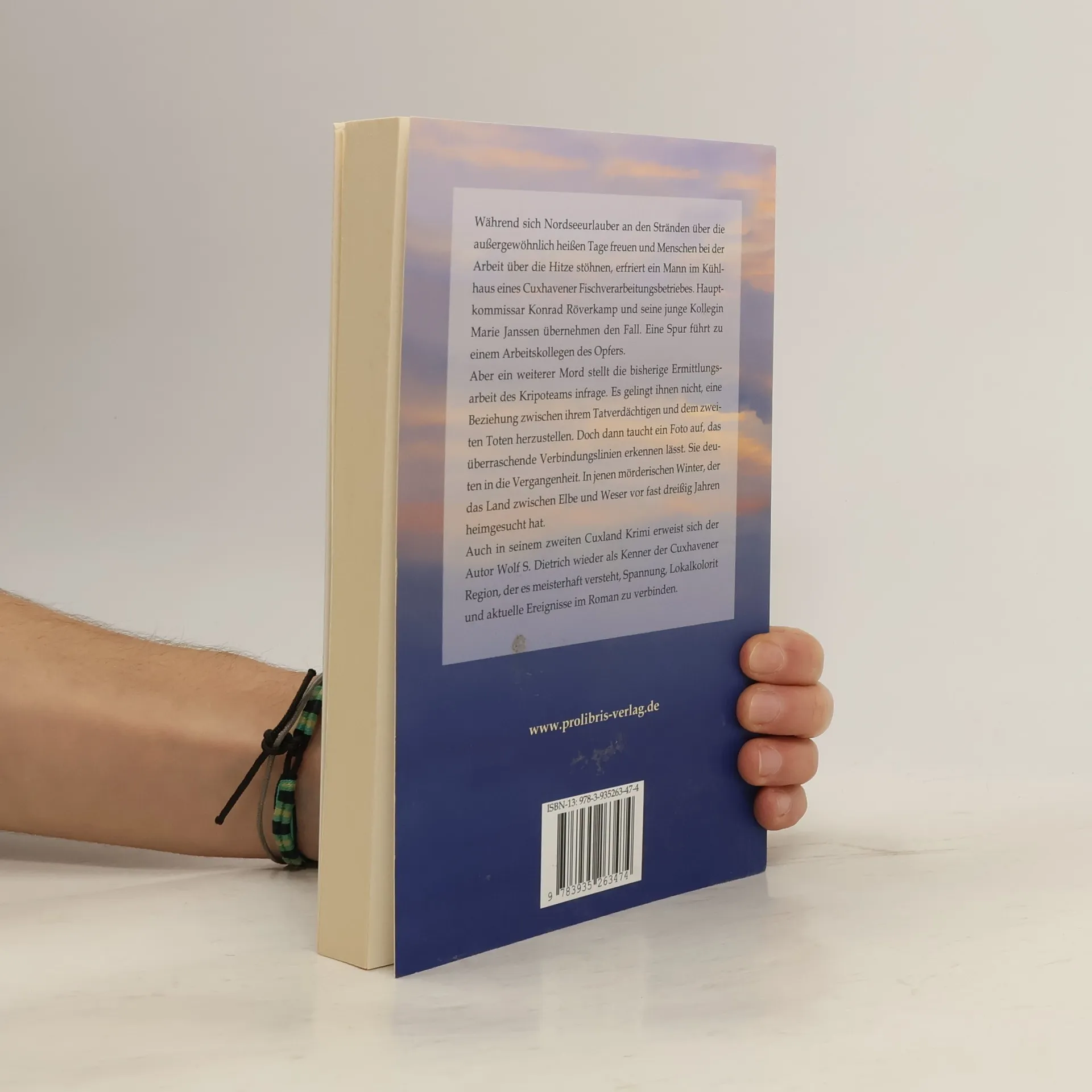 Während sich Nordseeurlauber an den Stränden über die außergewöhnlich heißen Tage freuen und Menschen bei der Arbeit über die Hitze stöhnen, erfriert ein Mann im Kühlhaus eines Cuxhavener Fischverarbeitungsbetriebes. Hauptkommissar Konrad Röverkamp und seine junge Kollegin Marie Janssen übernehmen den Fall. Eine Spur führt zu einem Arbeitskollegen des Opfers. Aber ein weiterer Mord stellt die bisherige Ermittlungsarbeit des Kripoteams infrage. Es gelingt ihnen nicht, eine Beziehung zwischen ihrem Tatverdächtigen und dem zweiten Toten herzustellen. Doch dann taucht ein Foto auf, das überraschende Verbindungslinien erkennen lässt. Sie deuten in die Vergangenheit. In jenen mörderischen Winter, der das Land zwischen Elbe und Weser vor fast dreißig Jahren heimgesucht hat. Auch in seinem zweiten Cuxland Krimi erweist sich der Autor Wolf S. Dietrich wieder als Kenner der Cuxhavener Region, der es versteht, Spannung, Lokalkolorit und aktuelle Ereignisse im Roman zu verbinden.