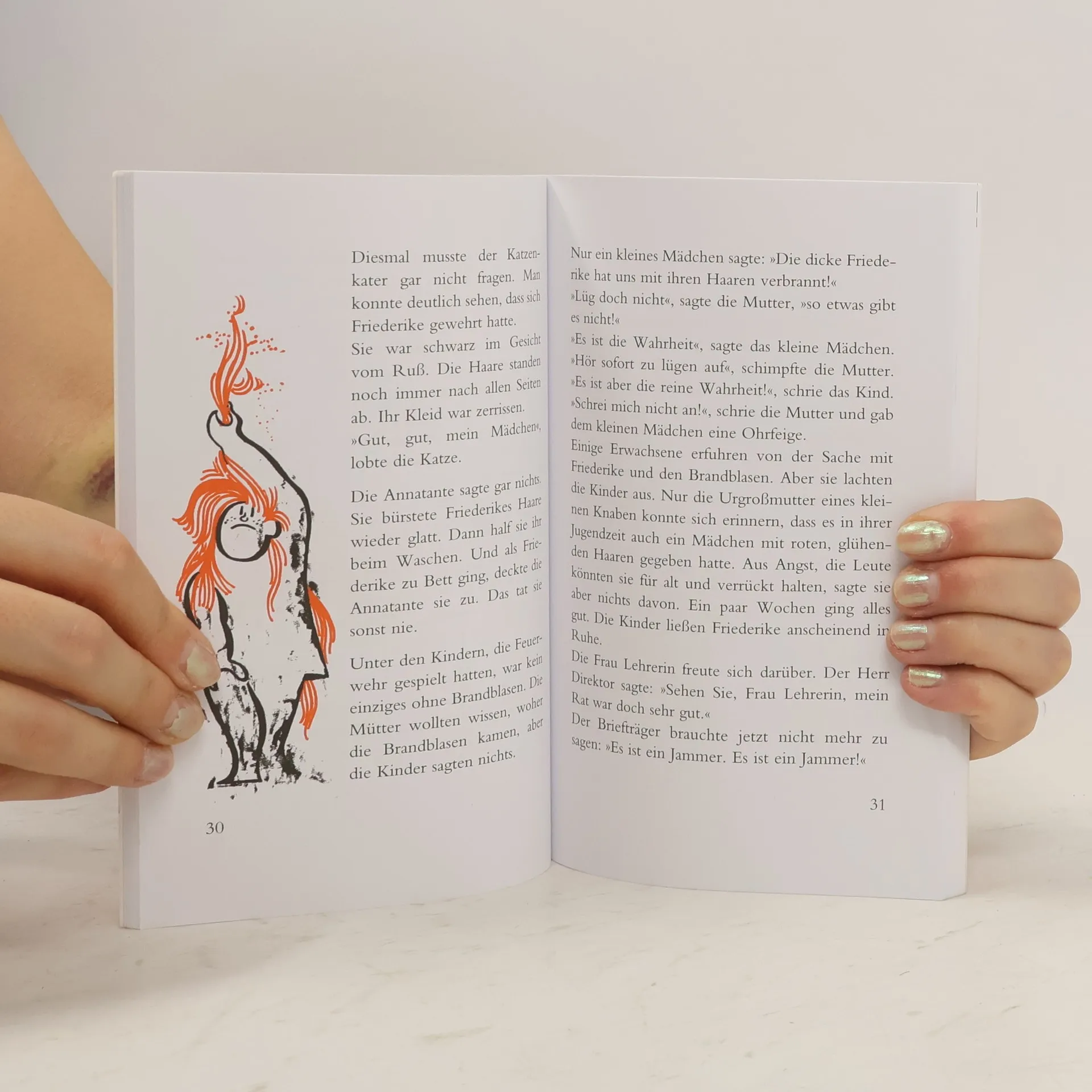 Friederike hat feuerrote Haare. Aber das ist nicht das einzig Ungewöhnliche ...  Friederike kommt der Annatante und der Katze Kater wie ein ganz normales Mädchen vor. Aber alle anderen Leute lachen, wenn sie Friederike sehen. Besonders die Kinder! Die rufen: »Da kommt die feuerrote Friederike! Feuer! Feuer! Auf der ihrem Kopf brennt's! Achtung, die Rote kommt!« So ergeht es der armen Friederike, nur weil sie rote Haare hat. Aber da es keine gewöhnlichen roten Haare sind, die sie von ihrem Vater geerbt hat, geschehen ein paar ganz ungewöhnliche Dinge… Zu diesem Buch finden Sie Quizfragen auf antolin. de