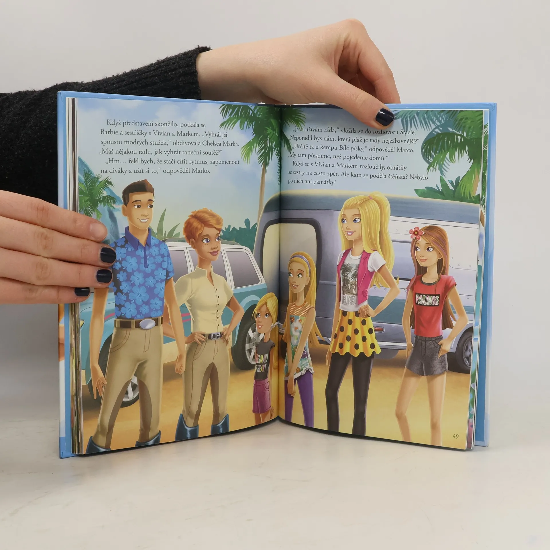 Barbie se sestřičkami se ocitají na tropickém ostrově, kde má Chelsea taneční soutěž. Barbie má pro sestry překvapení, ale vše dopadne jinak, protože se během výletu ztratí milovaná štěňata a porouchá vypůjčené auto. Jak všechno skončí? Stihne Chelsea svoje vystoupení? Druhý příběh nás zavede na prázdniny k babičce. Na půdě holky objeví starou omšelou mapu s ukrytým pokladem. Podaří se sestrám společně s hravými štěňaty rozplést staré tajemství?